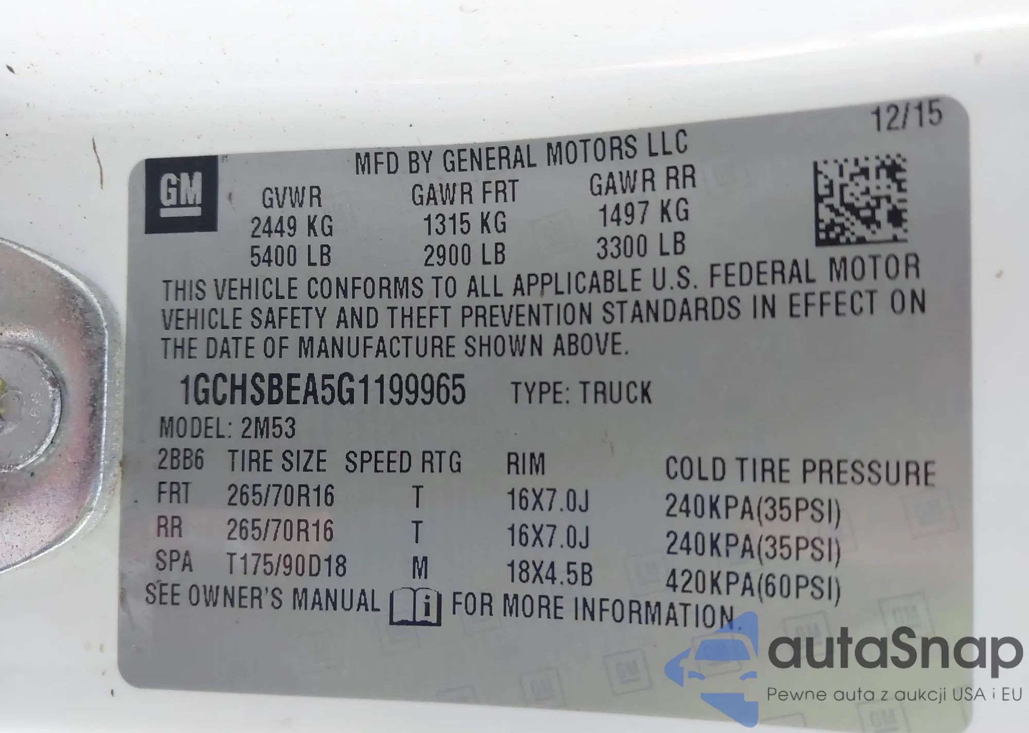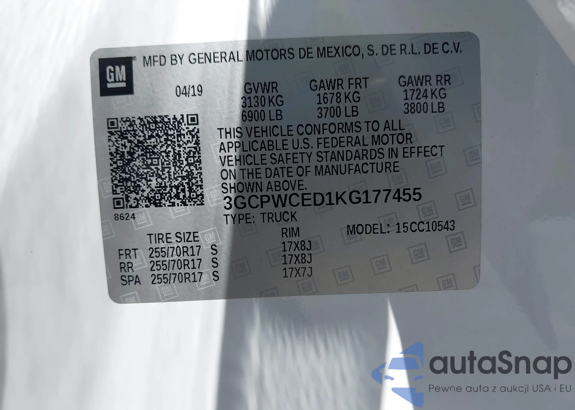 • VIN 3GCPWCED1KG177455
