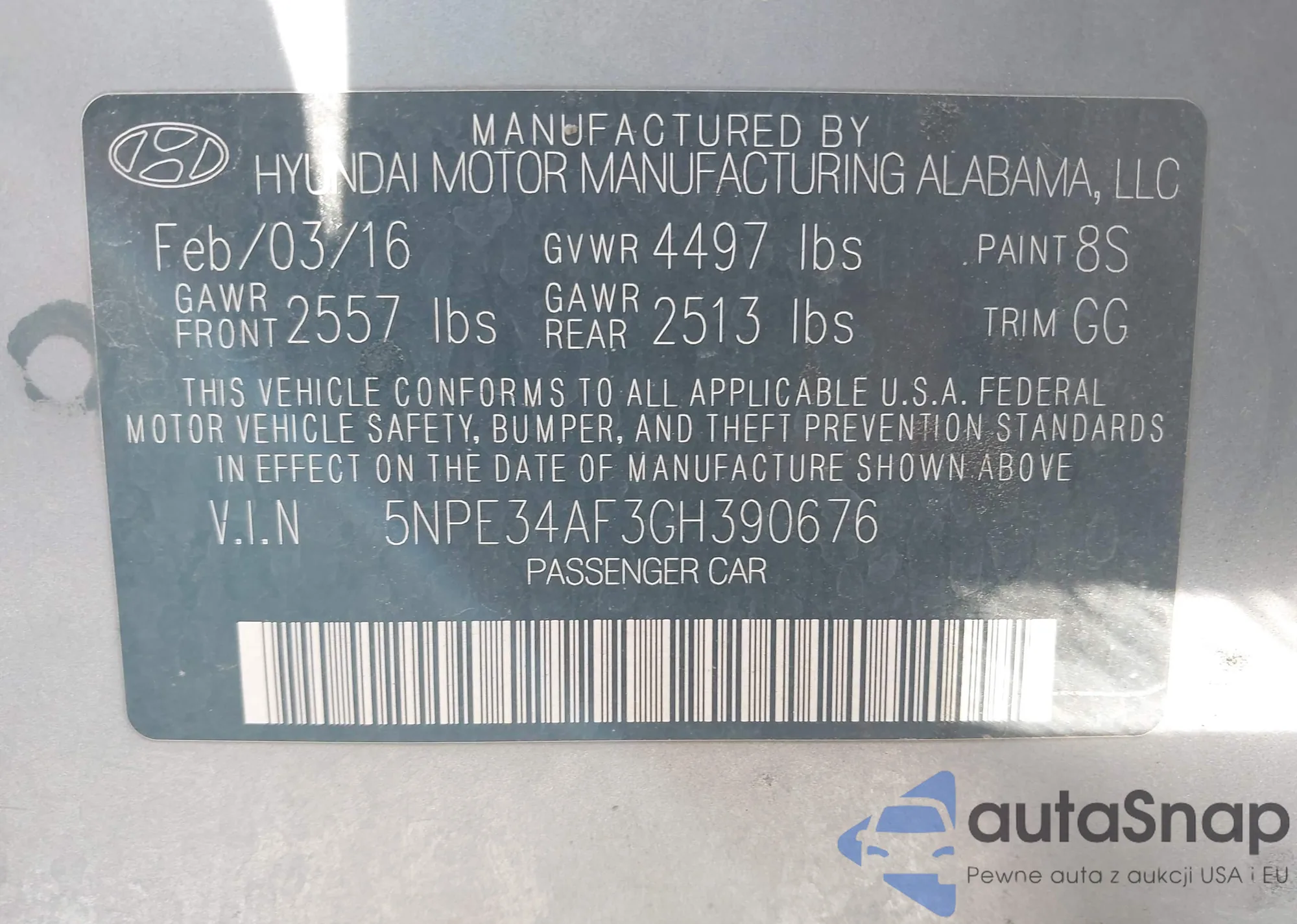• VIN 5NPE34AF3GH390676