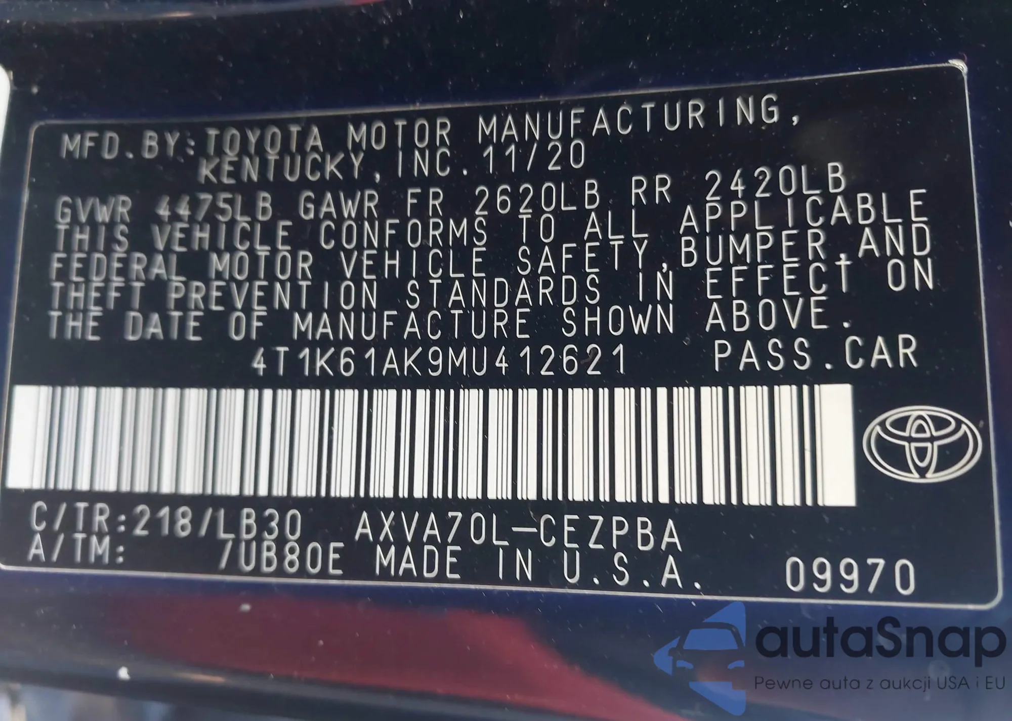 • VIN 4T1K61AK9MU412621