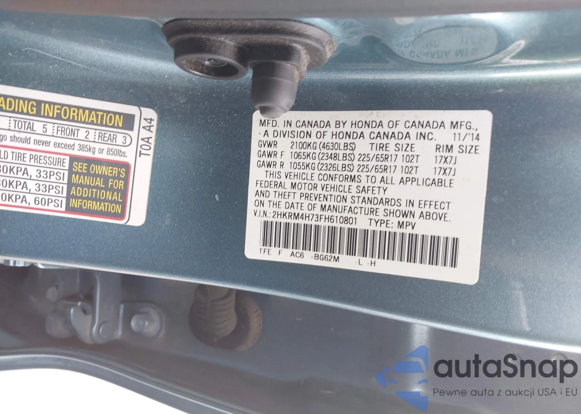 LOT: 43463703 VIN: 2HKRM4H73FH610801