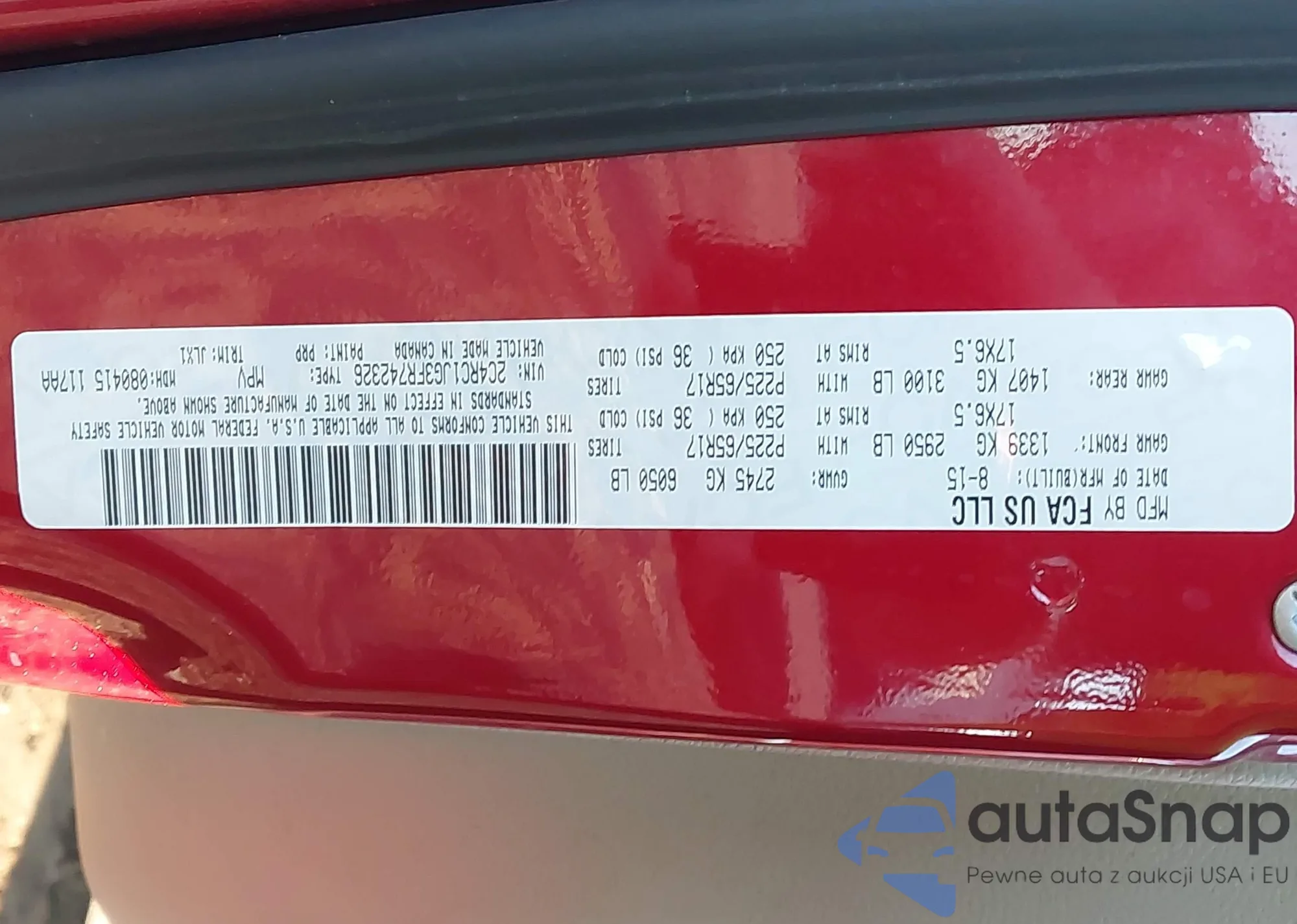 LOT: 43463963 VIN: 2C4RC1JG3FR742326