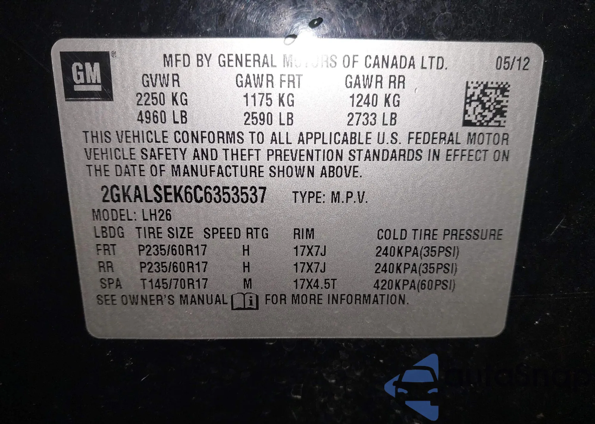 • VIN WMWSX1C51CT163855