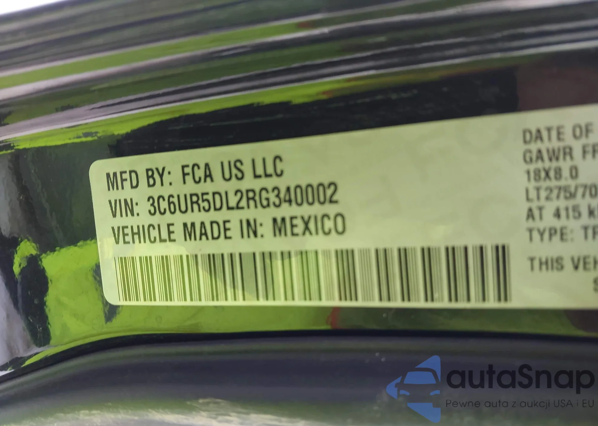• VIN 3C6UR5DL2RG340002