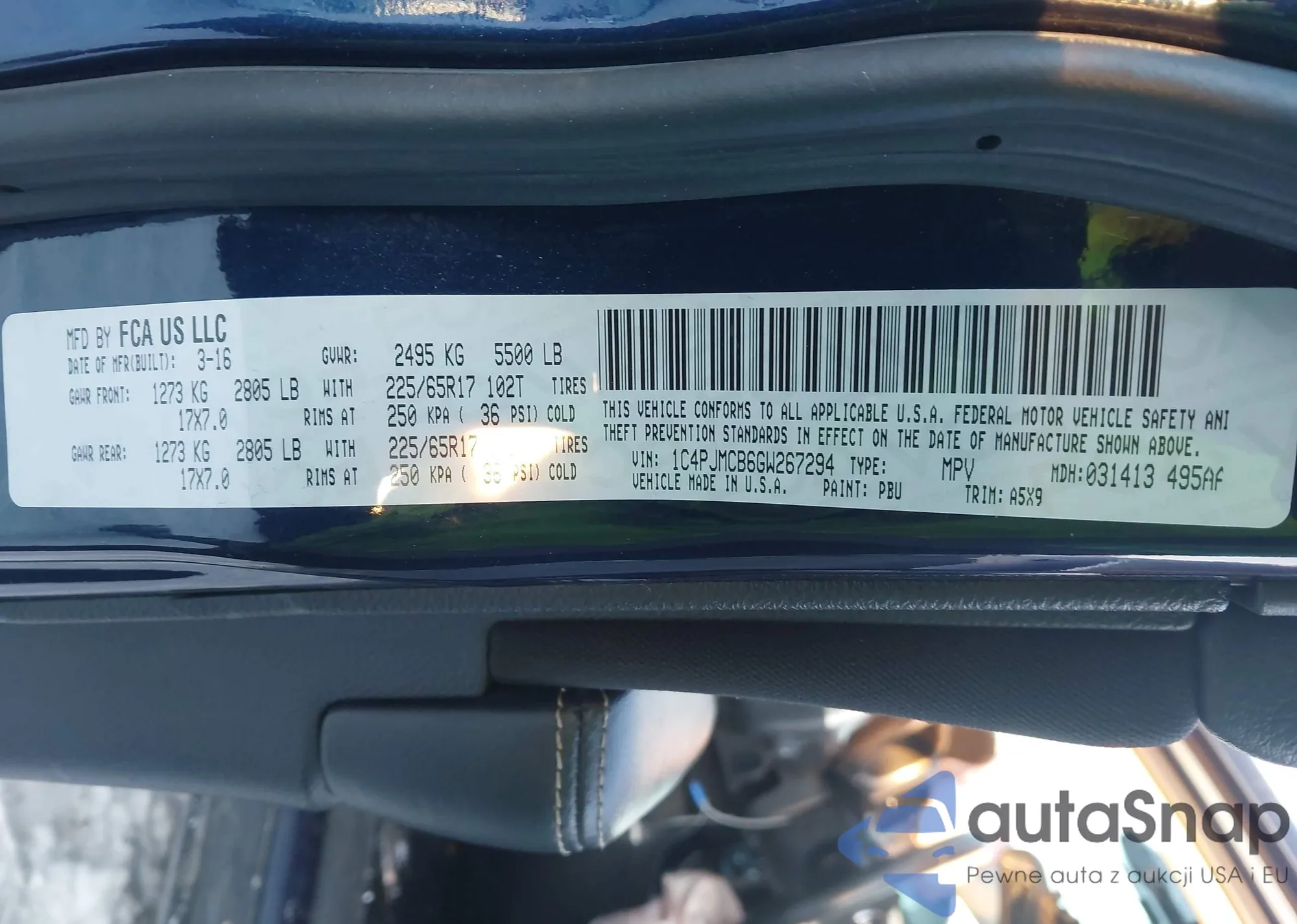 LOT: 43854312 VIN: 1C4PJMCB6GW267294