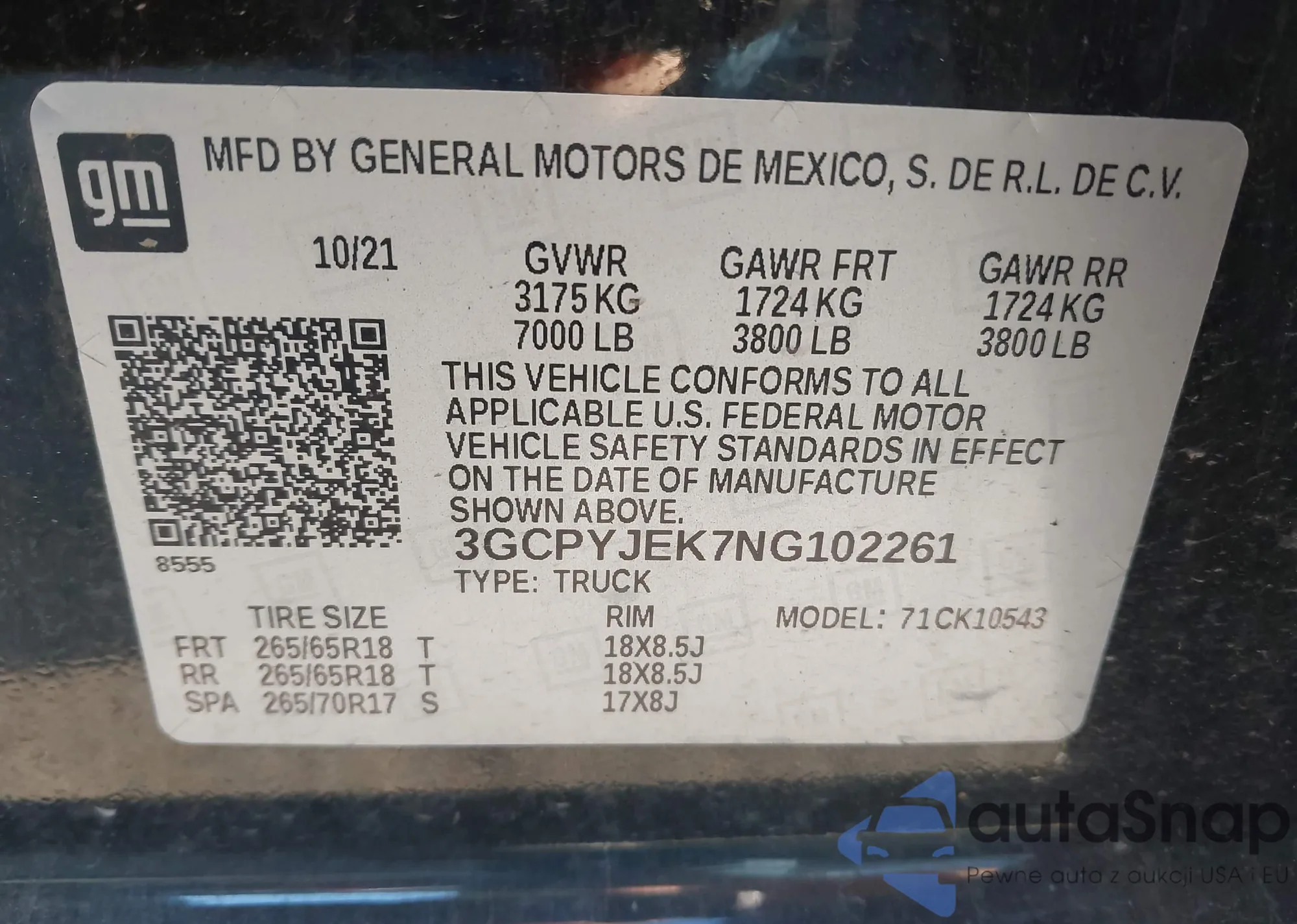 LOT: 43246571 VIN: 3GCPYJEK7NG102261
