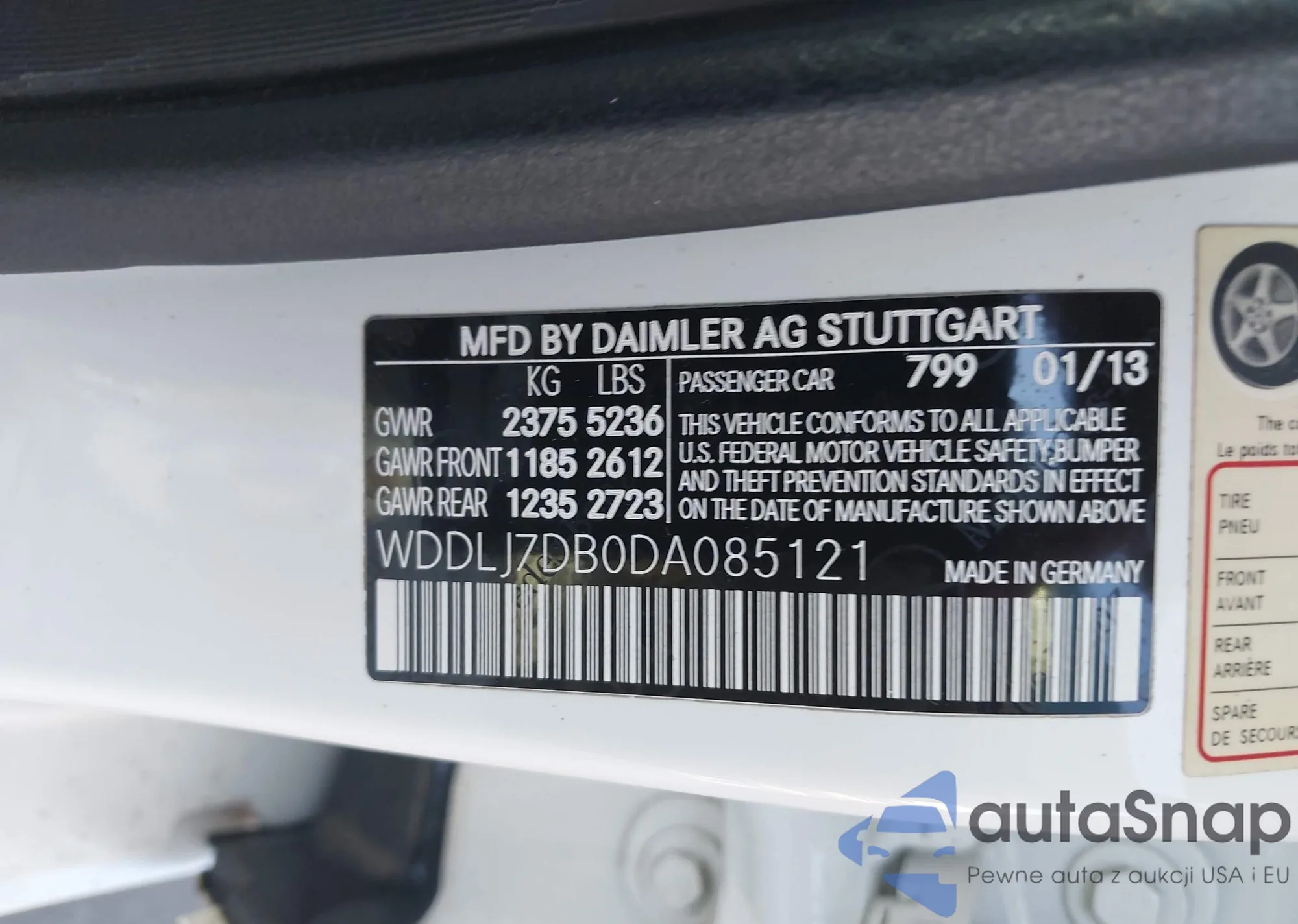 • VIN WDDLJ7DB0DA085121