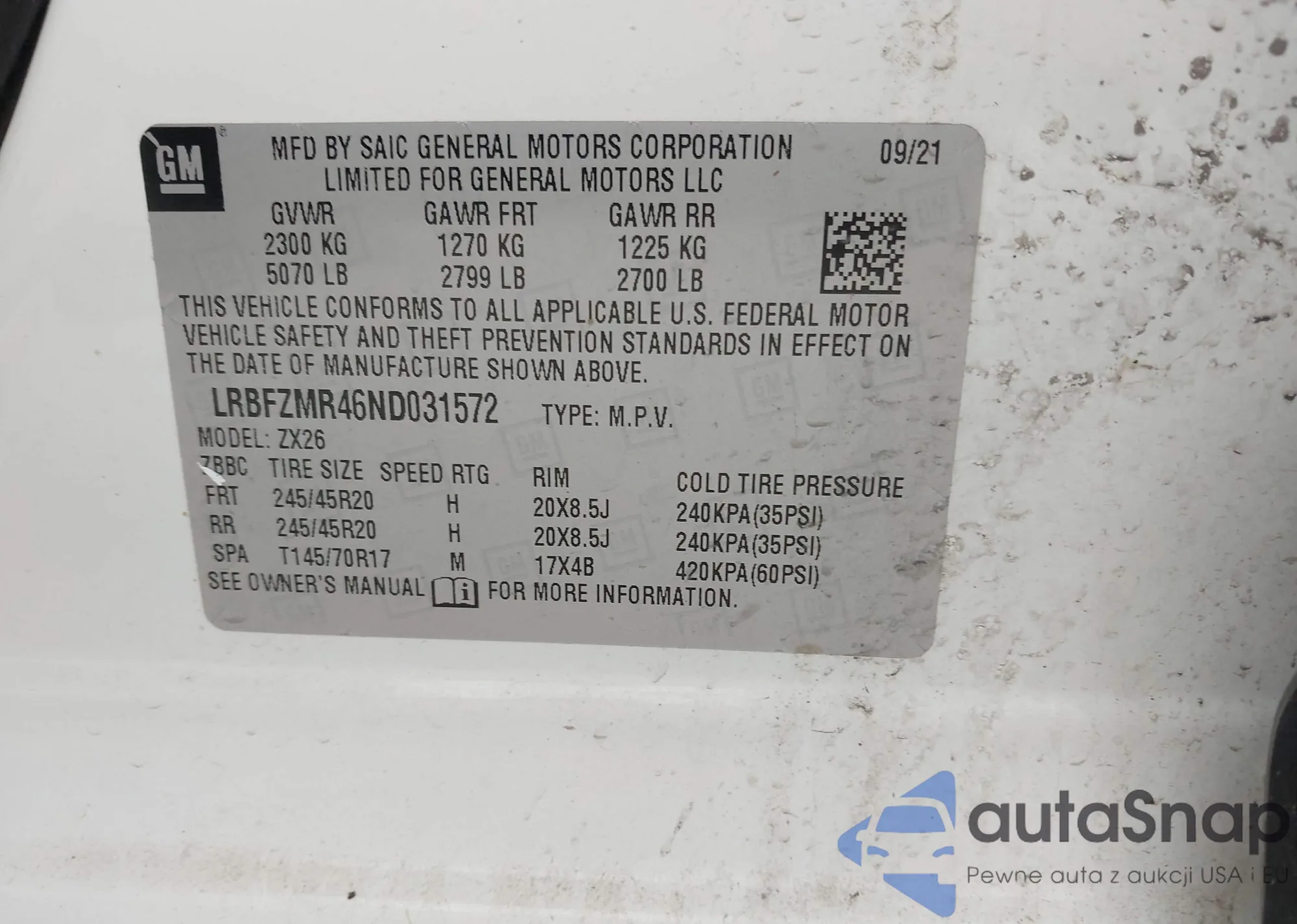 LOT: 43732105 VIN: LRBFZMR46ND031572