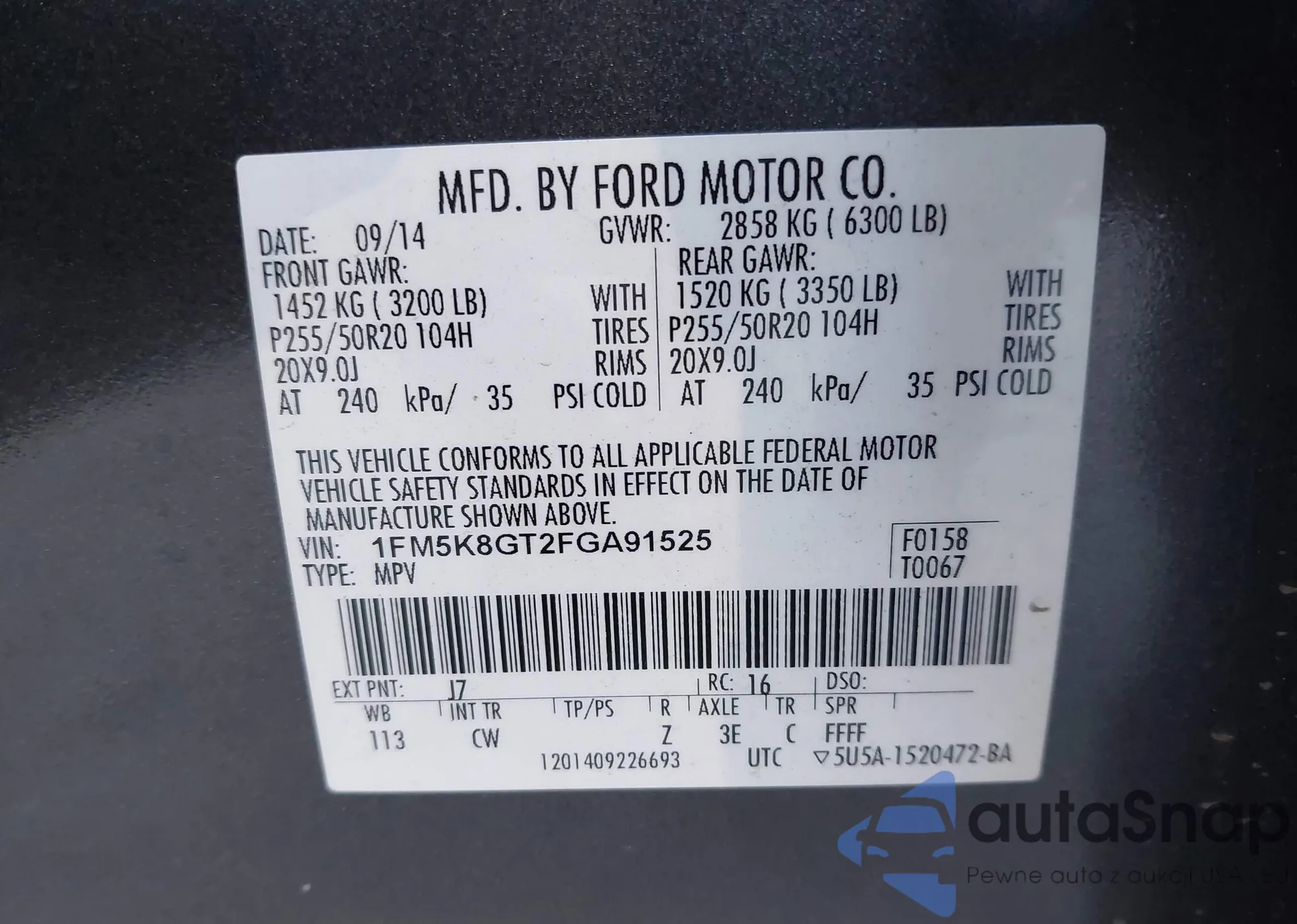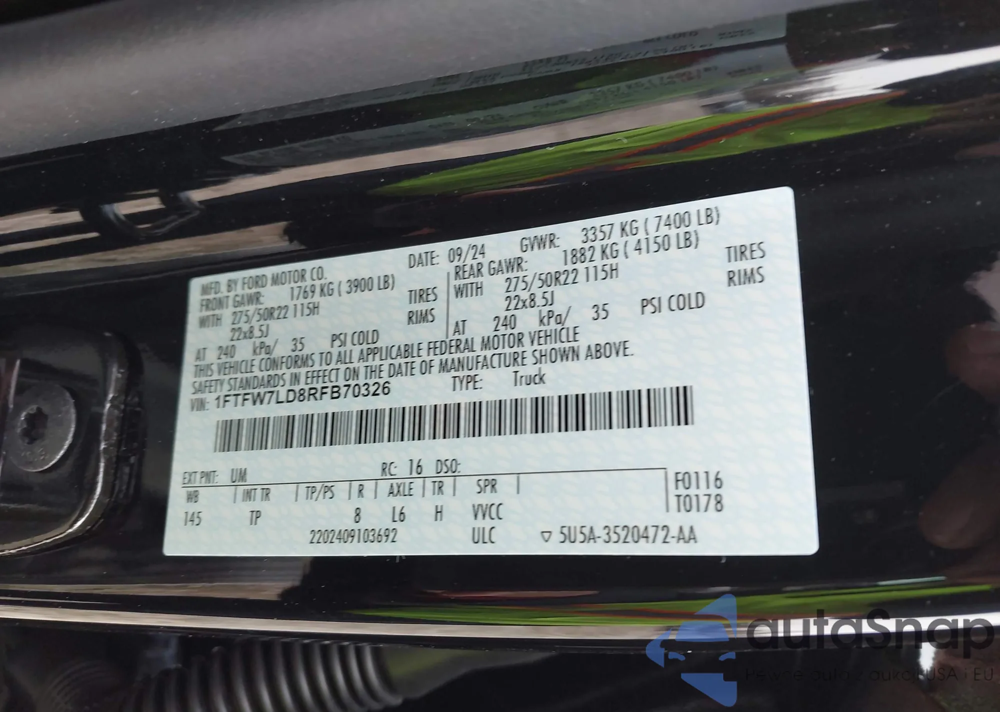 • VIN 1FTFW7LD8RFB70326