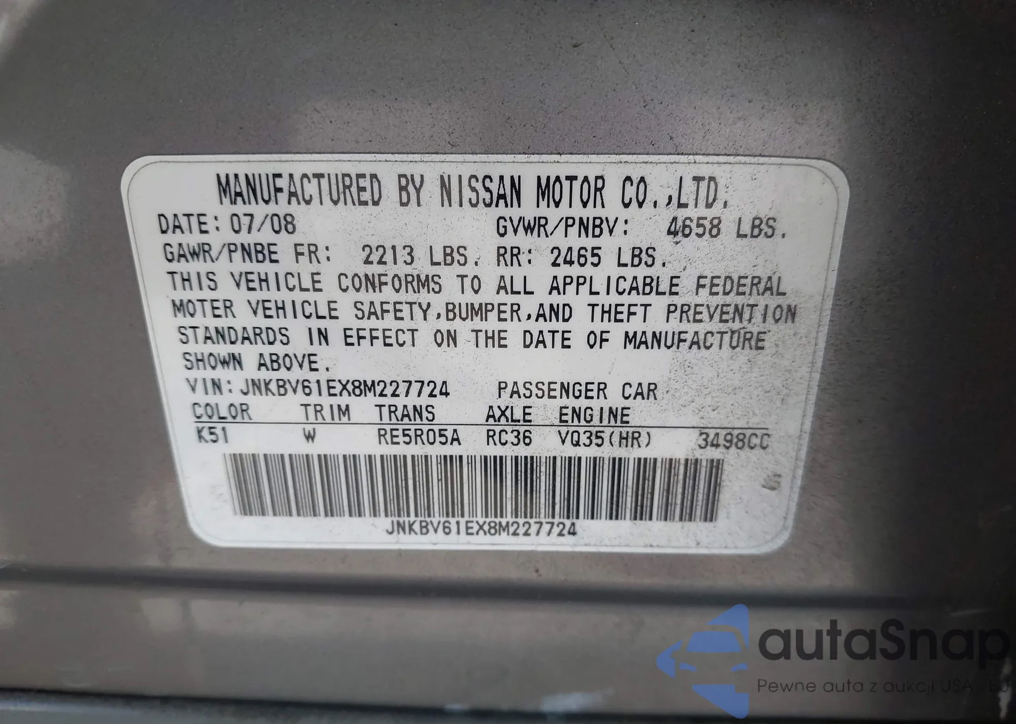 LOT: 37506547 VIN: JF1GV7E65EG002465