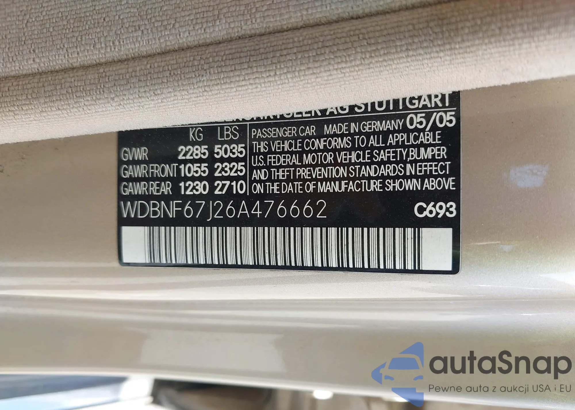 • VIN WDBNF67J26A476662