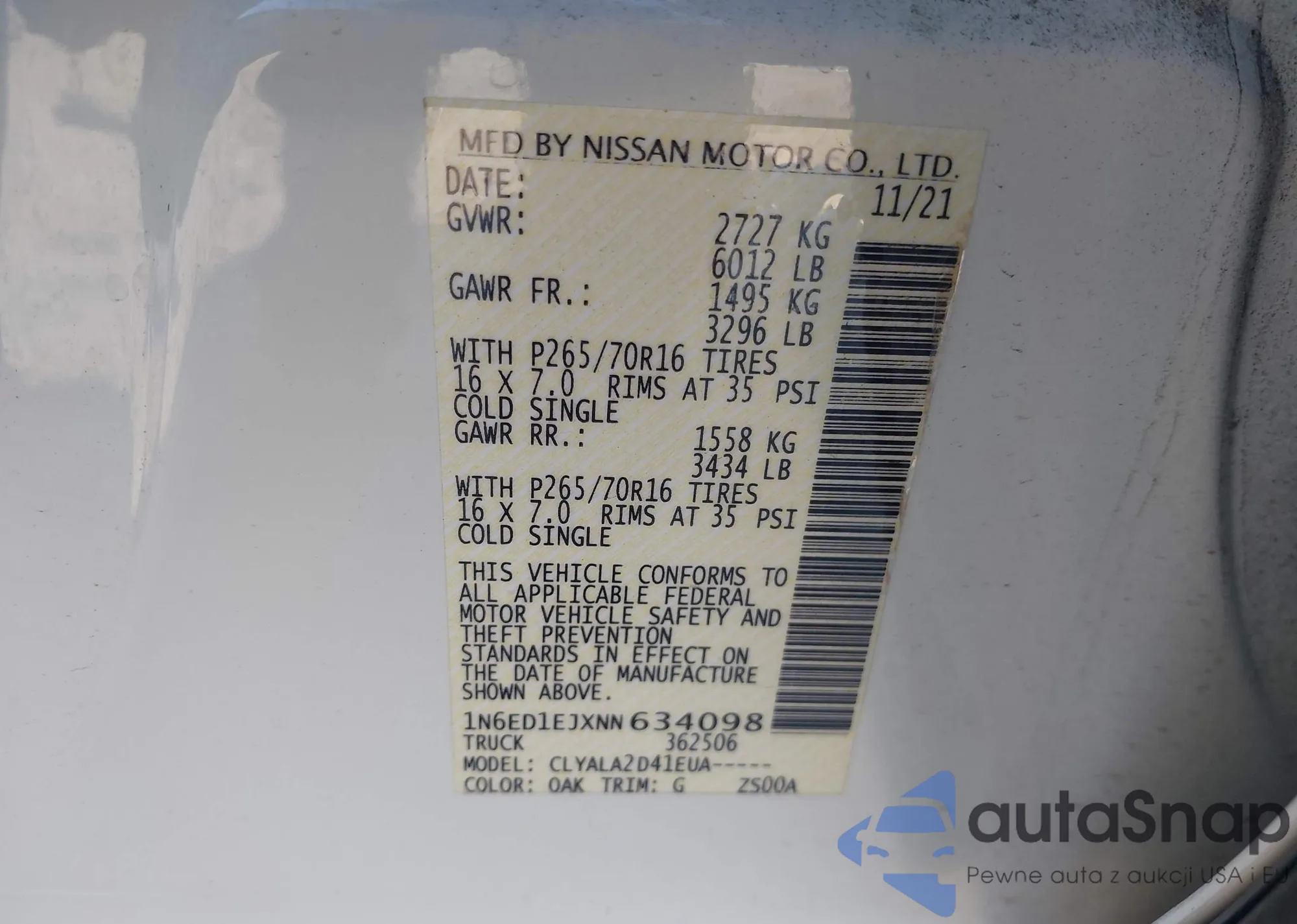 • VIN 1N6ED1EJXNN634098