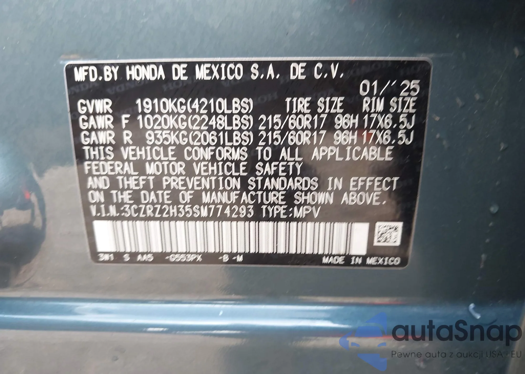 • VIN 3CZRZ2H35SM774293