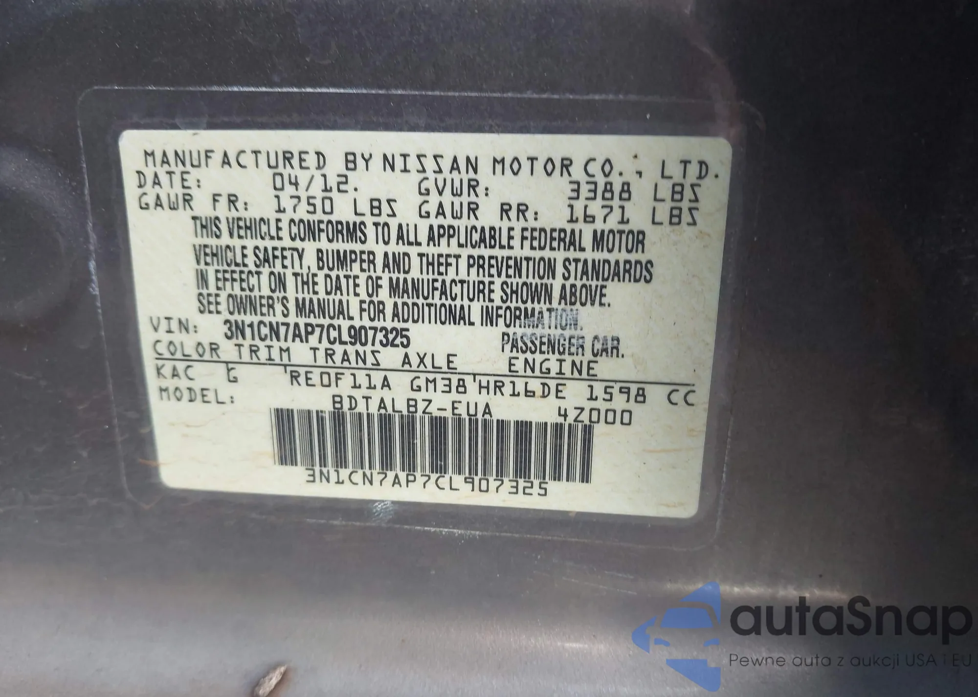 • VIN 3N1CN7AP7CL907325