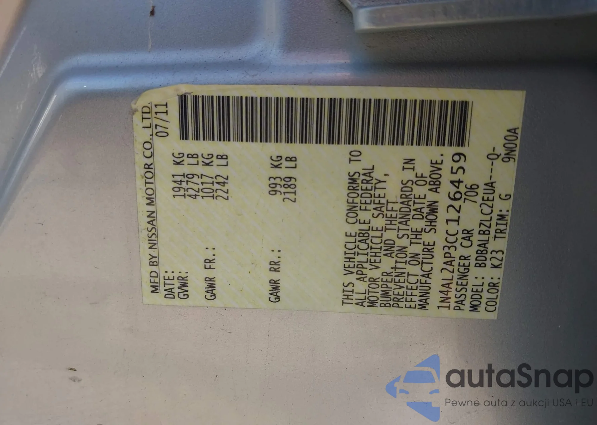 LOT: 42668023 VIN: 1N4AL2AP3CC126459