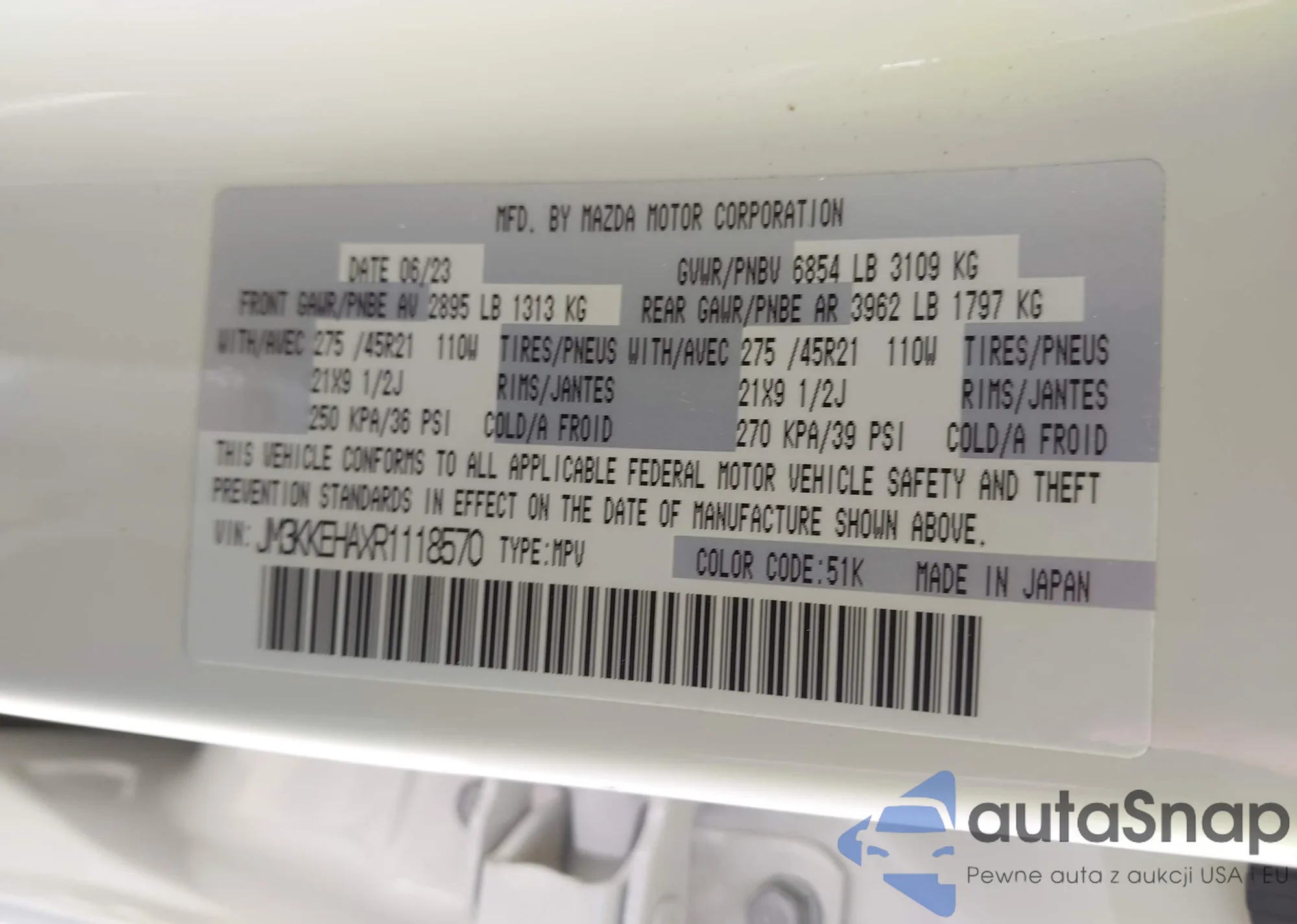 LOT: 43663563 VIN: JM3KFACM5M0420538