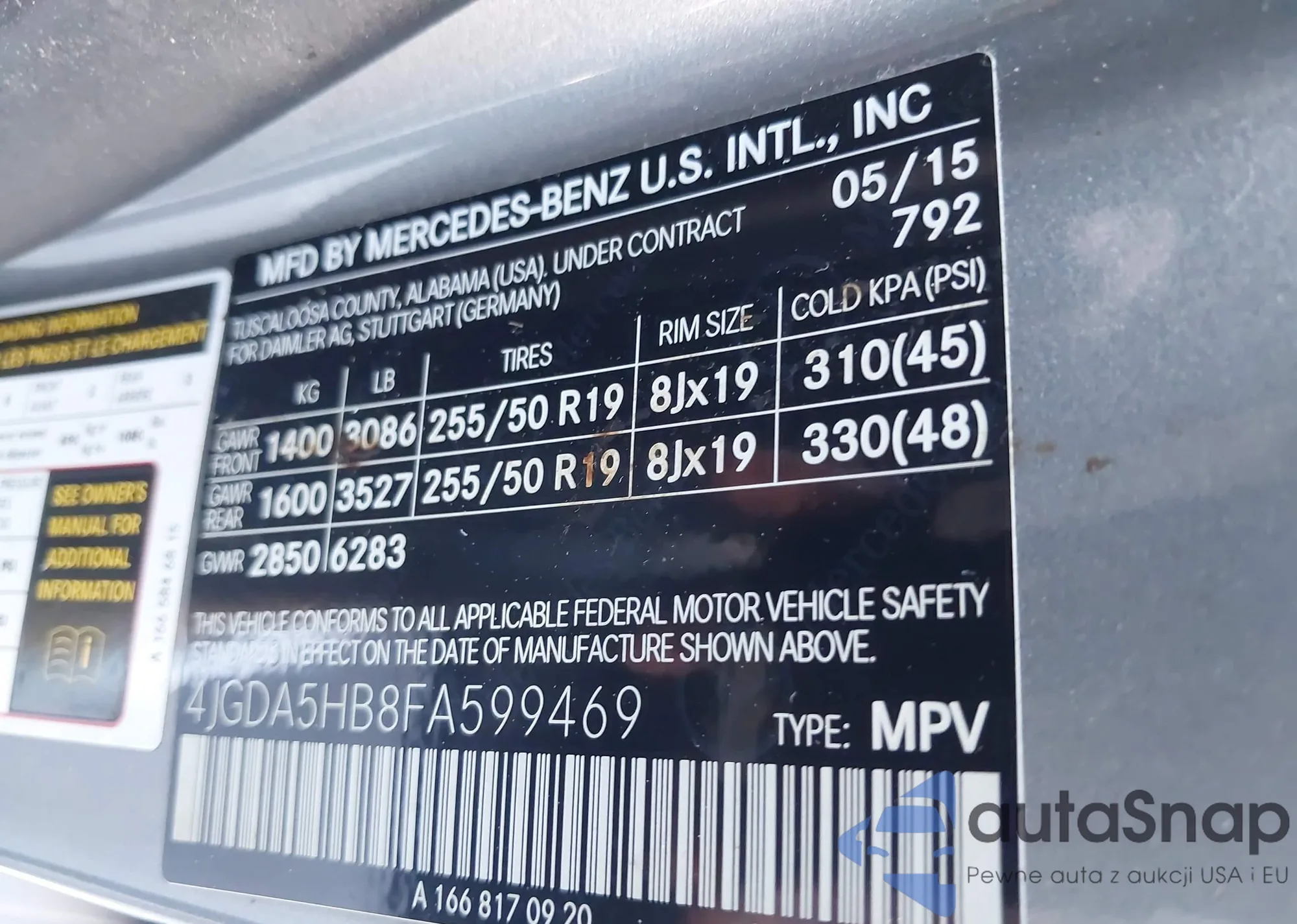 • VIN 4JGDA5HB8FA599469