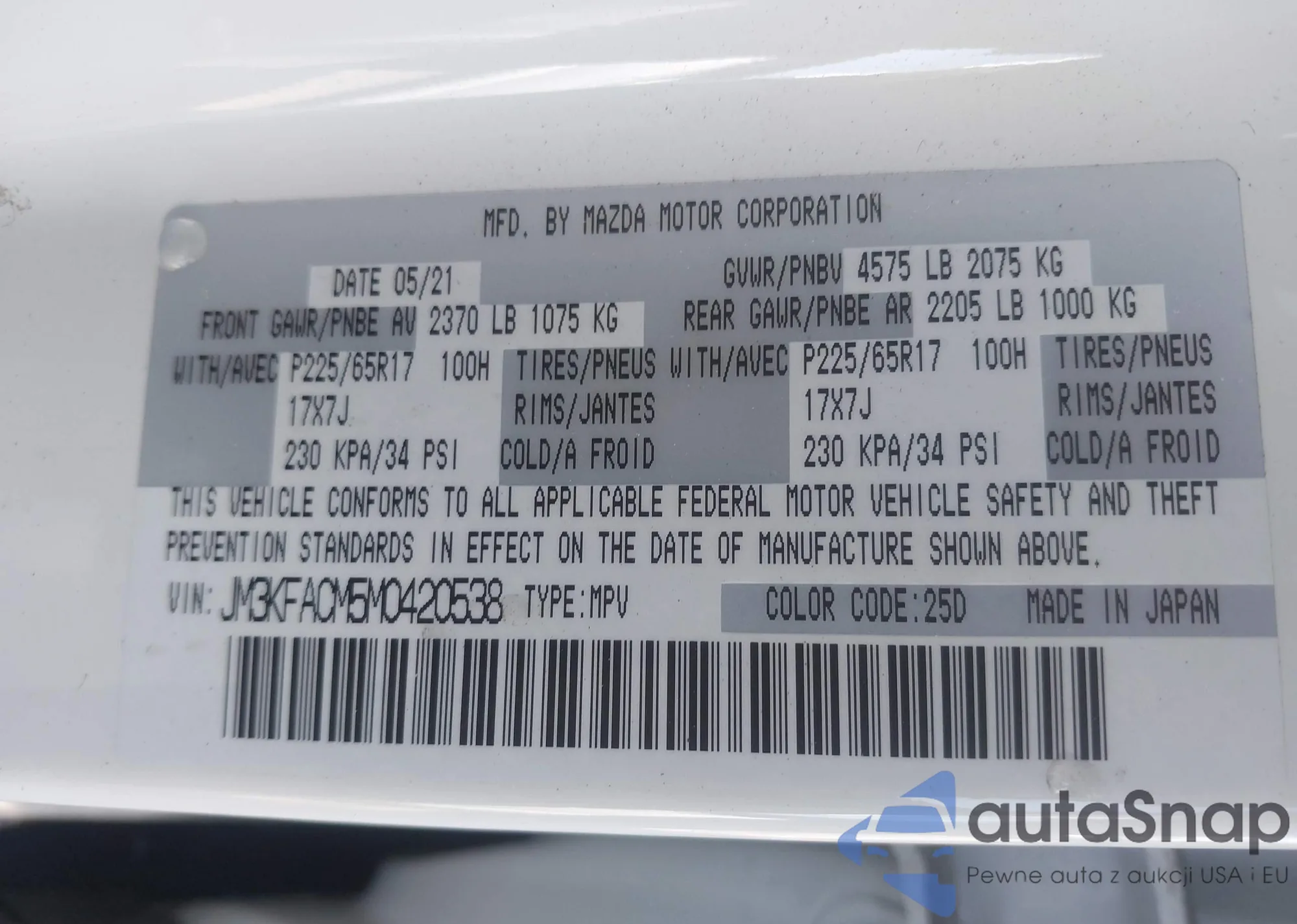 • VIN JM3KFACM5M0420538
