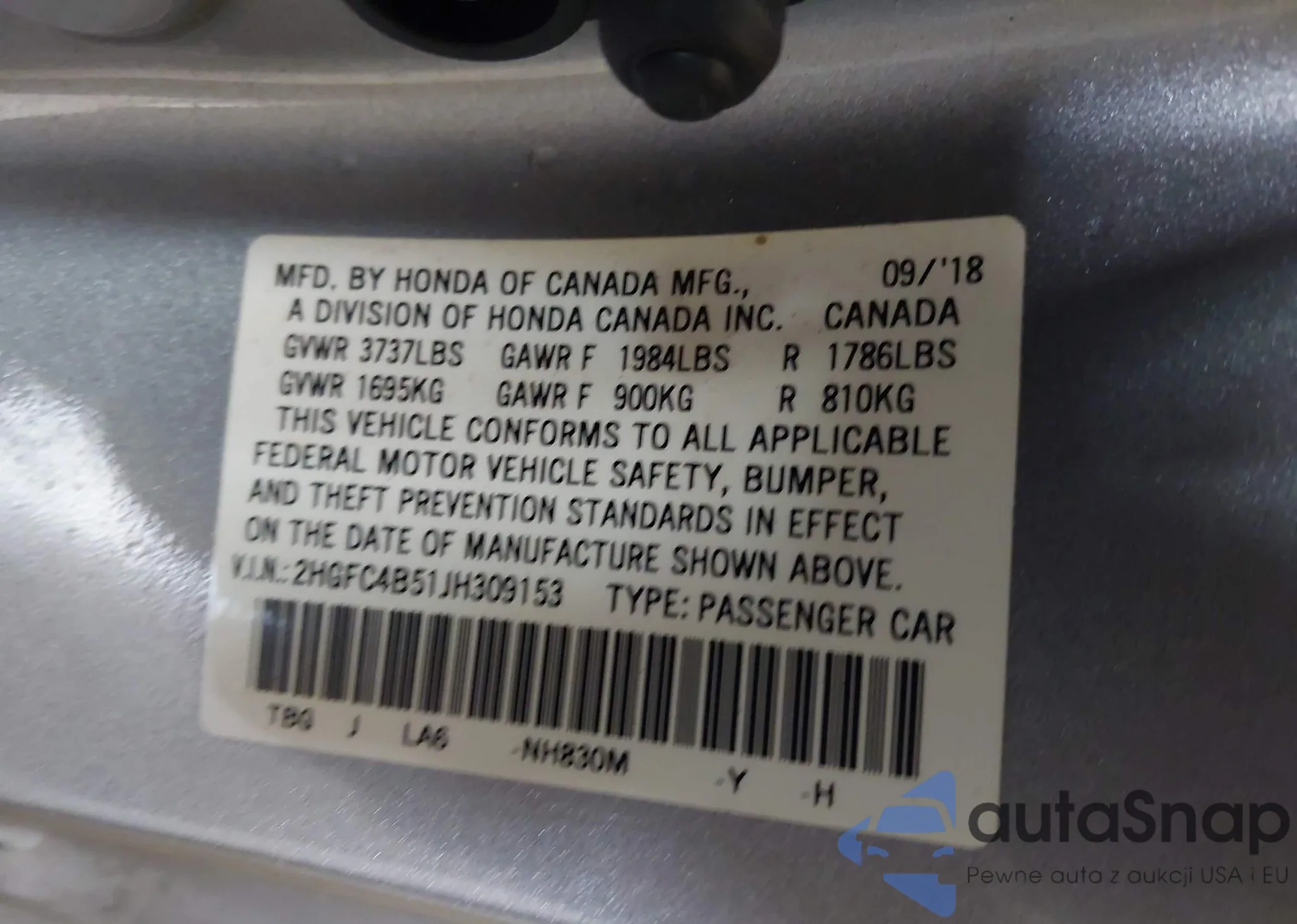 • VIN 2HGFC4B51JH309153