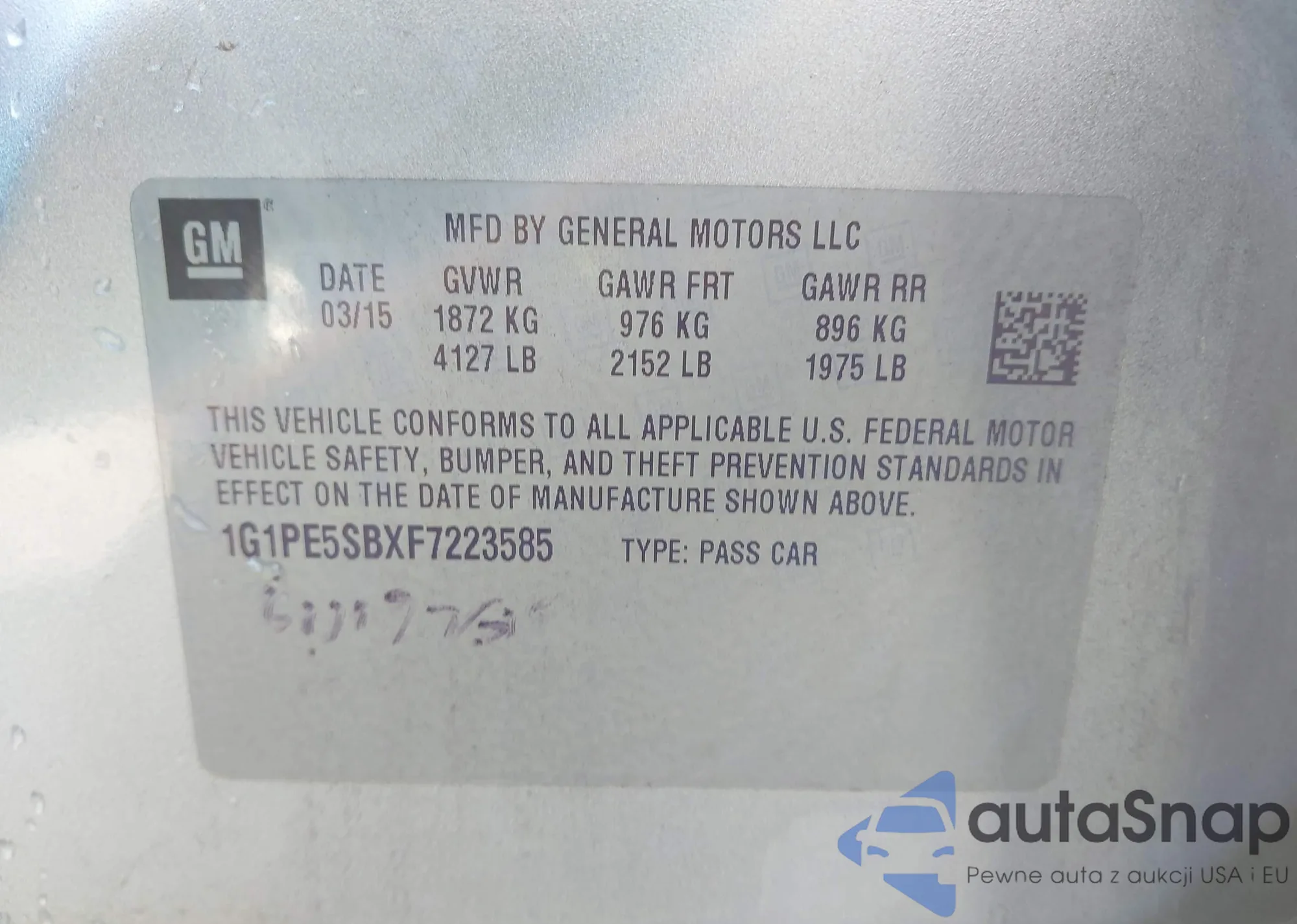 • VIN 1G1PE5SBXF7223585