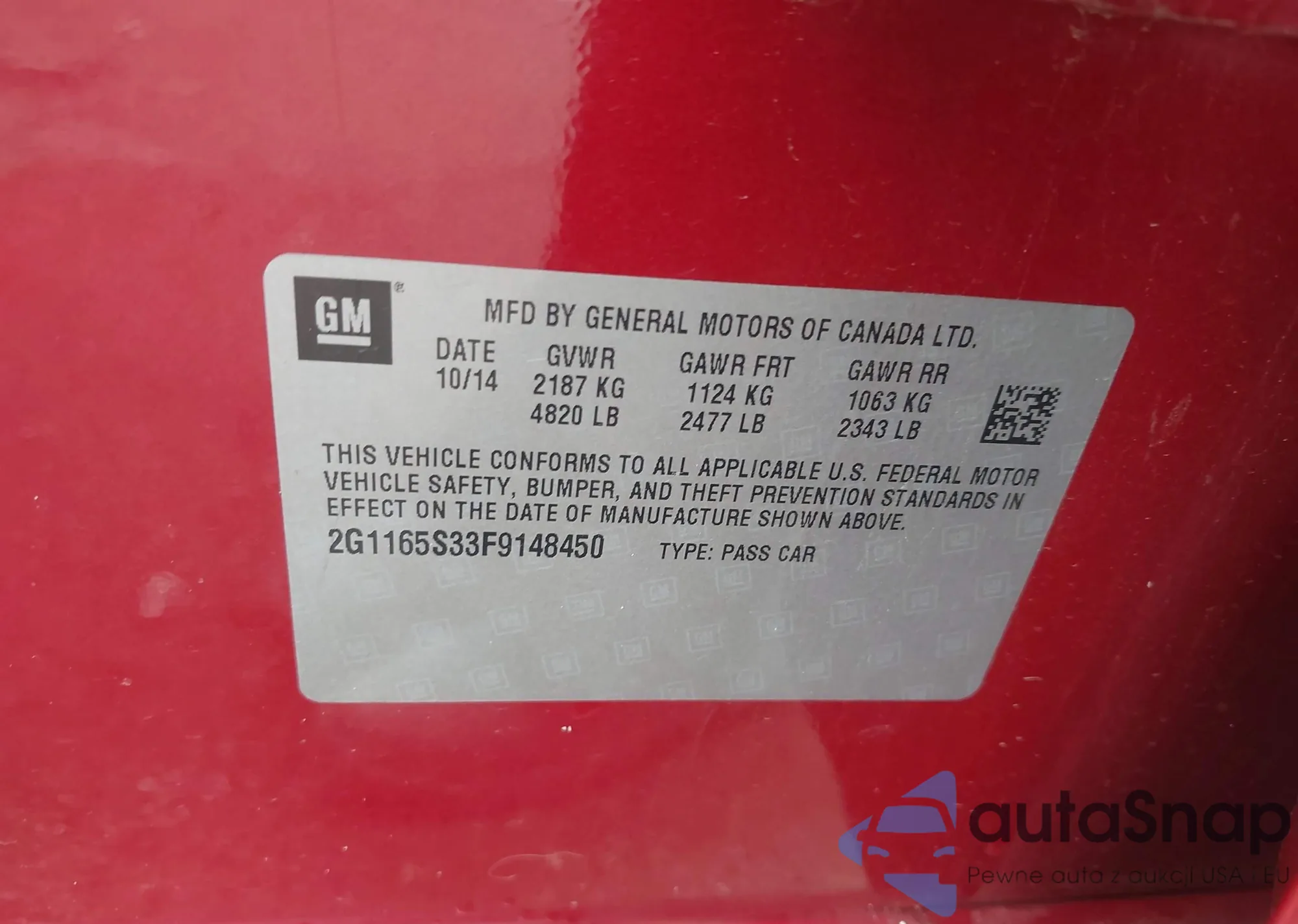 • VIN 2G1165S33F9148450