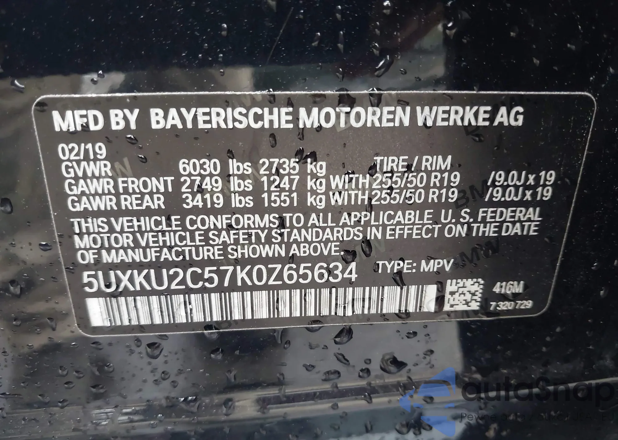 • VIN 5UXKU2C57K0Z65634
