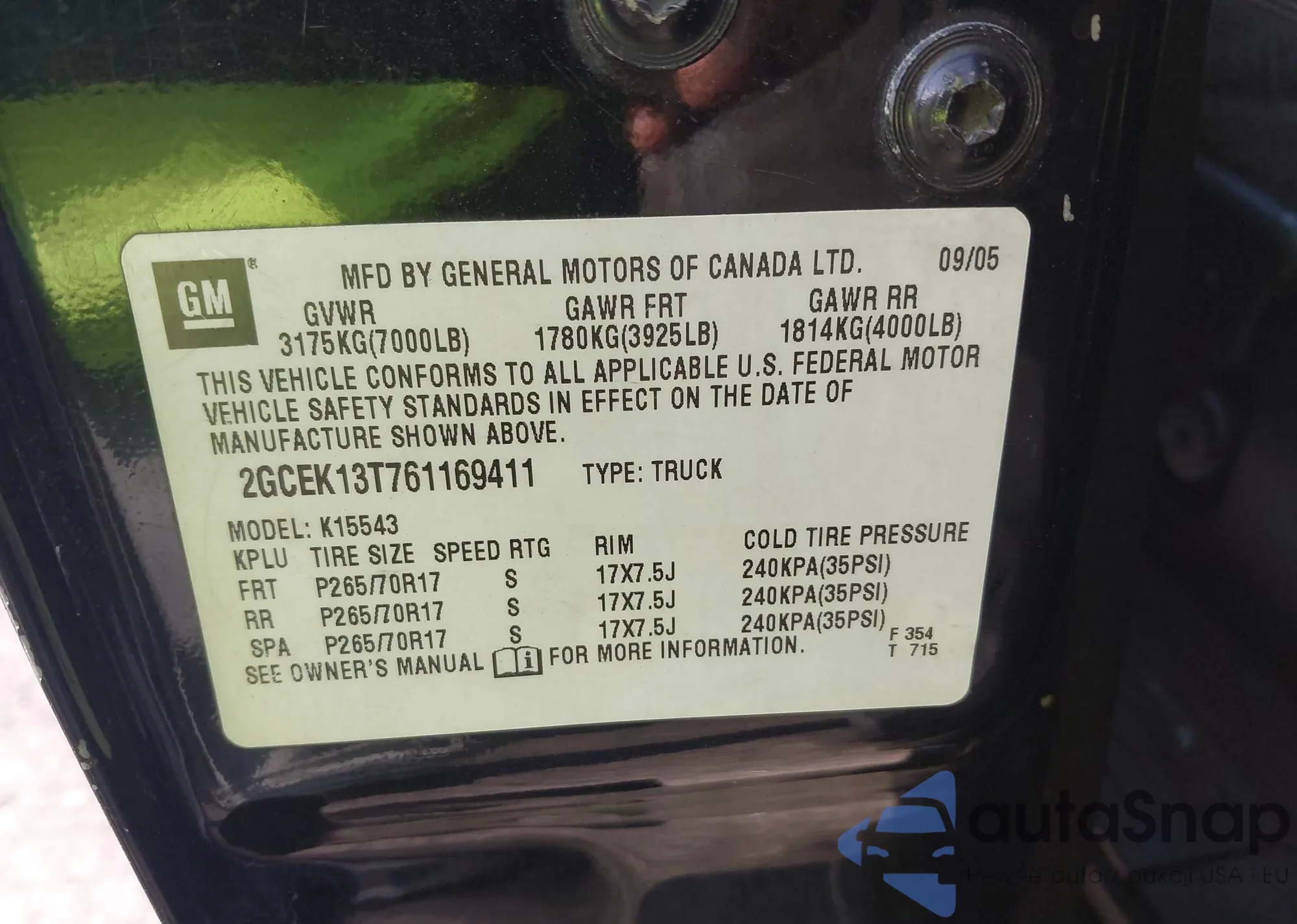 • VIN 2GCEK13T761169411