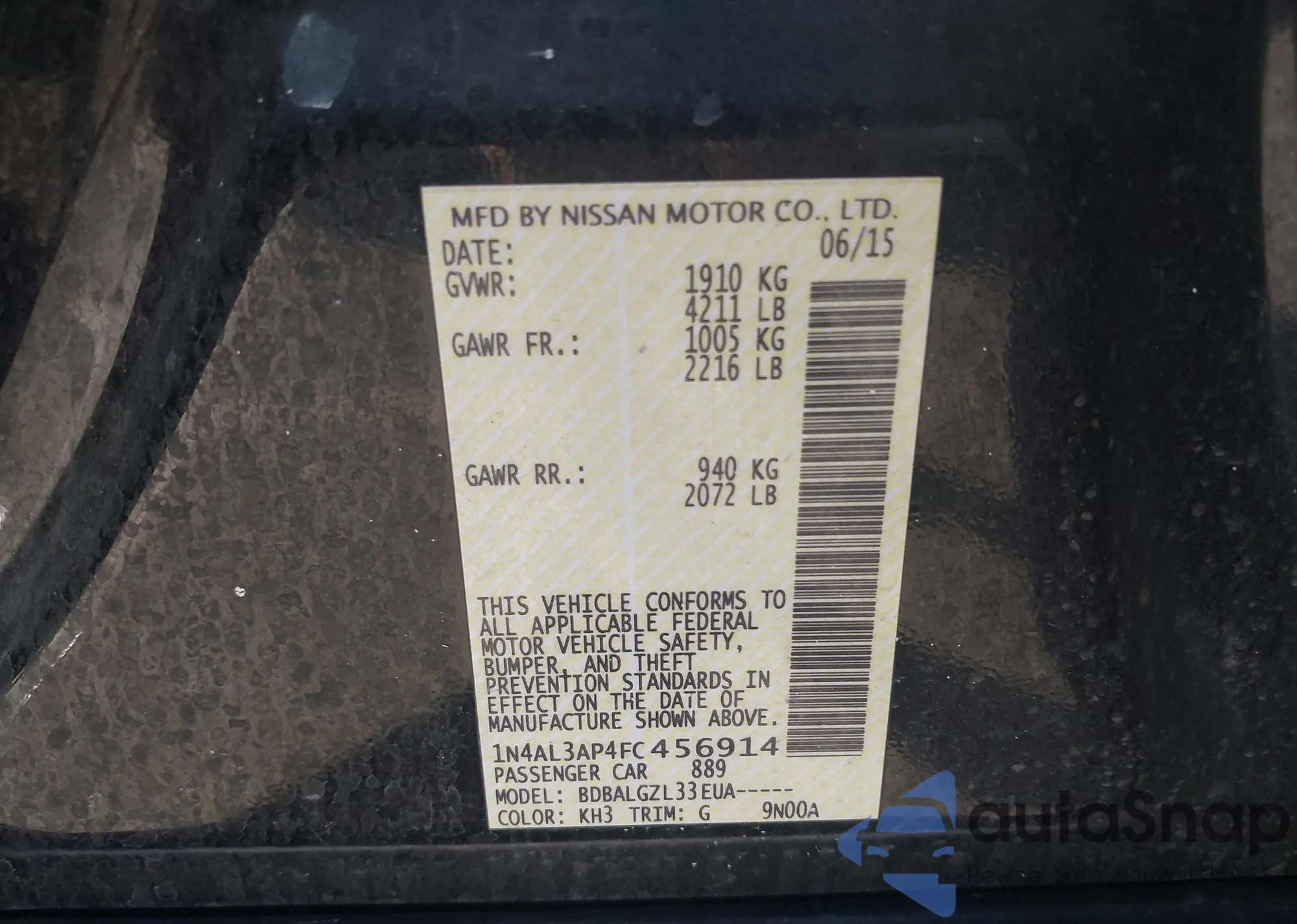 LOT: 43326194 VIN: 1N4AL3AP4FC456914