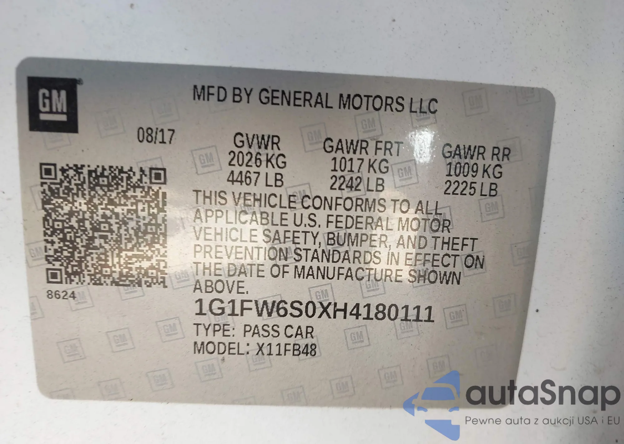 • VIN 1G1FW6S0XH4180111