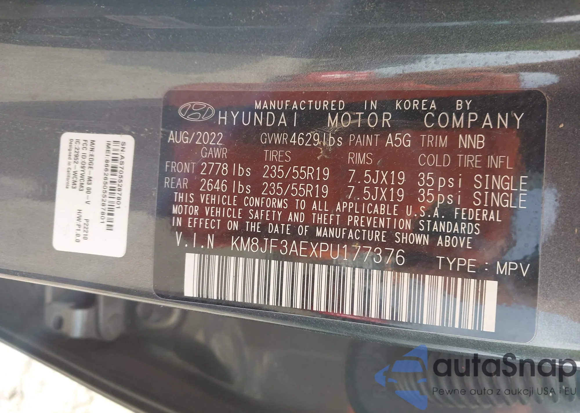 • VIN KM8JF3AEXPU177376