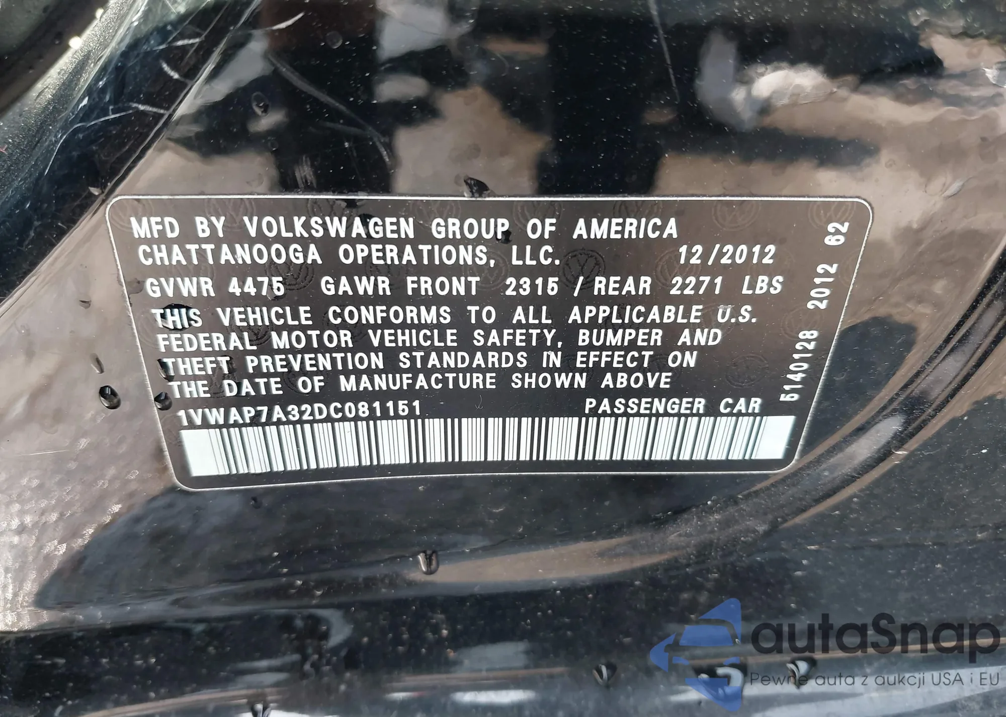 LOT: 42954857 VIN: 1VWAP7A32DC081151