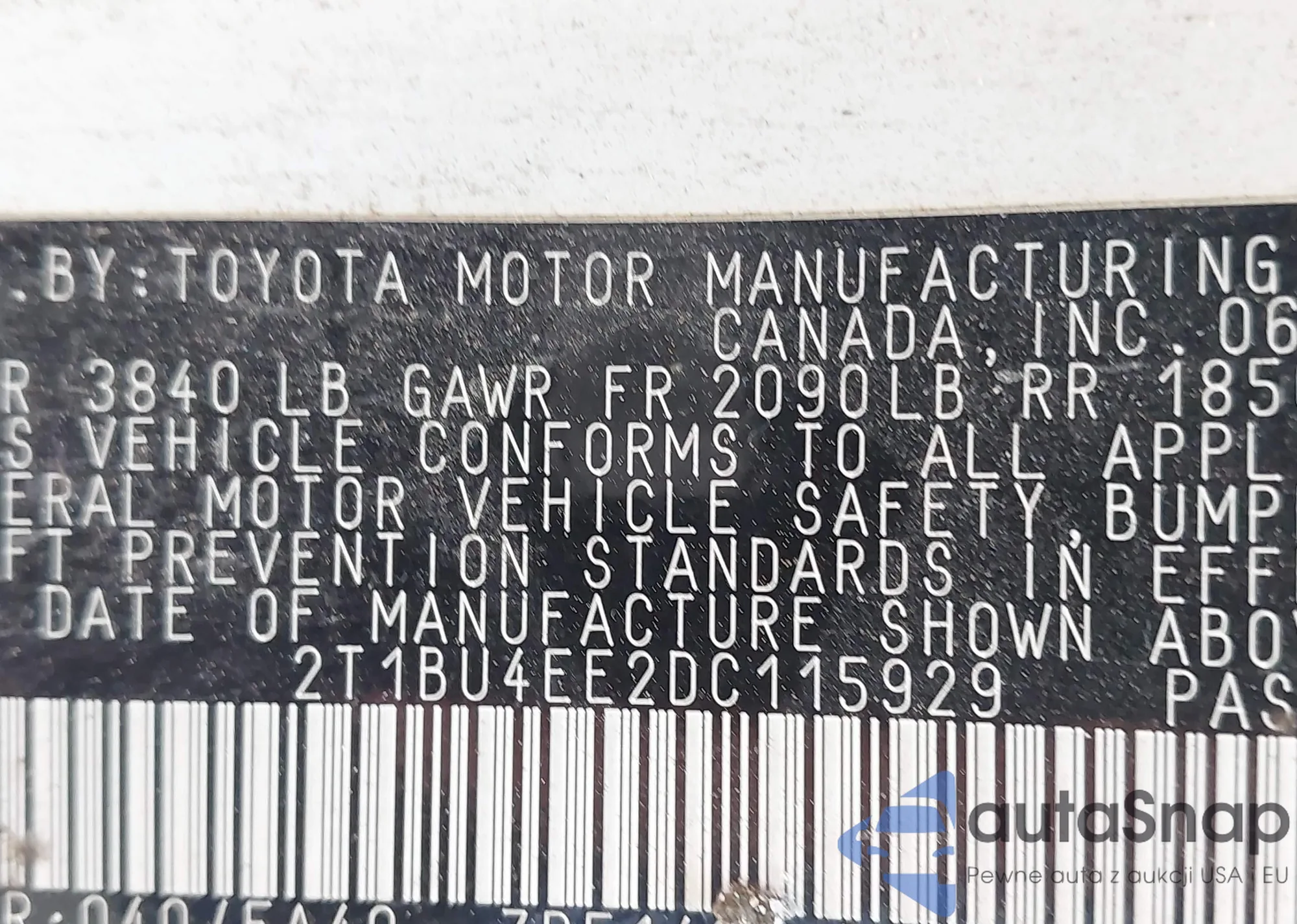 • VIN 2T1BU4EE2DC115929