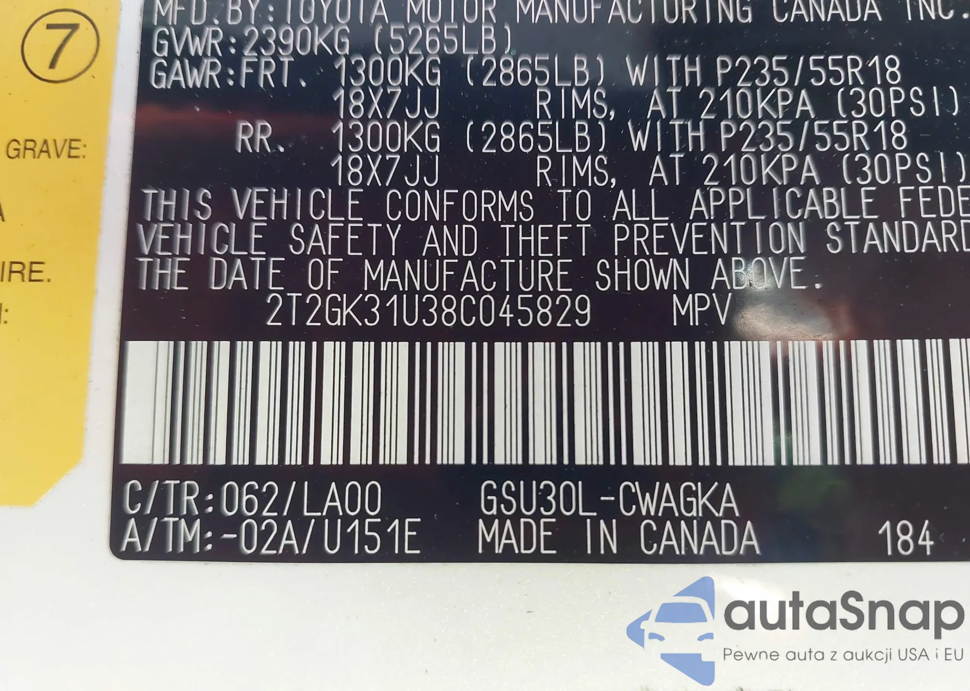 LOT: 43479739 VIN: 2T2GK31U38C045829