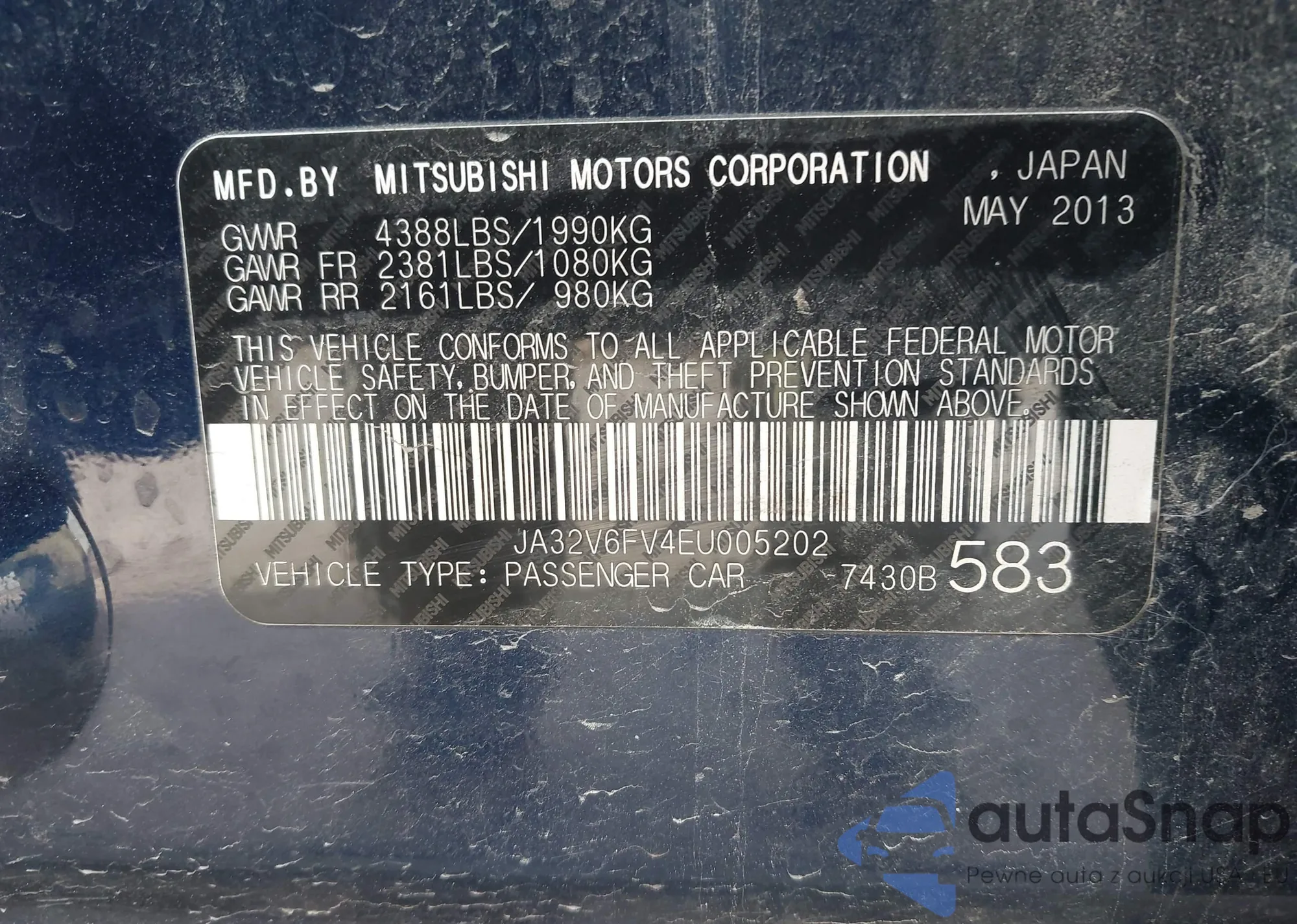LOT: 43559060 VIN: JA32V6FV4EU005202