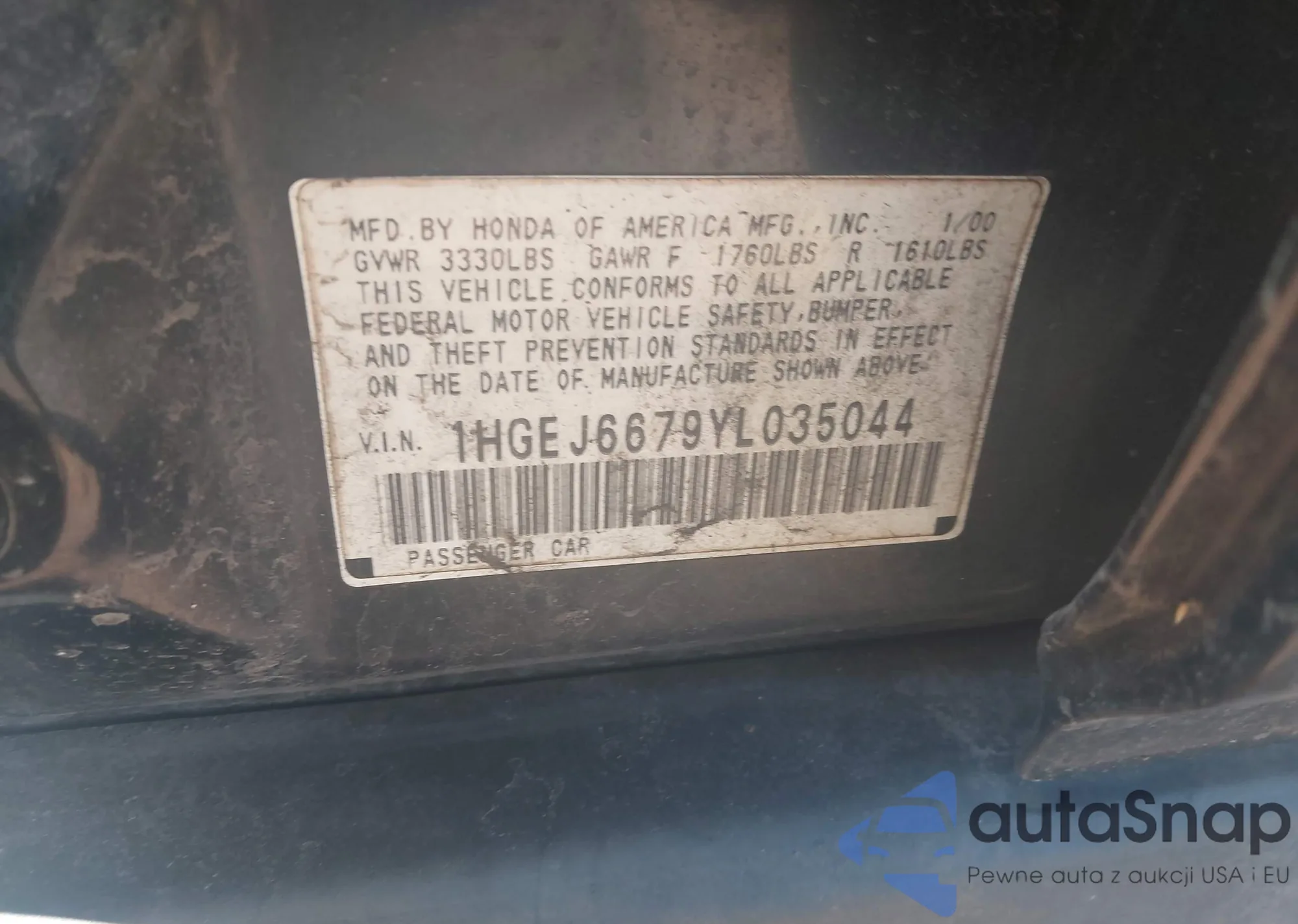 • VIN 1HGEJ6679YL035044