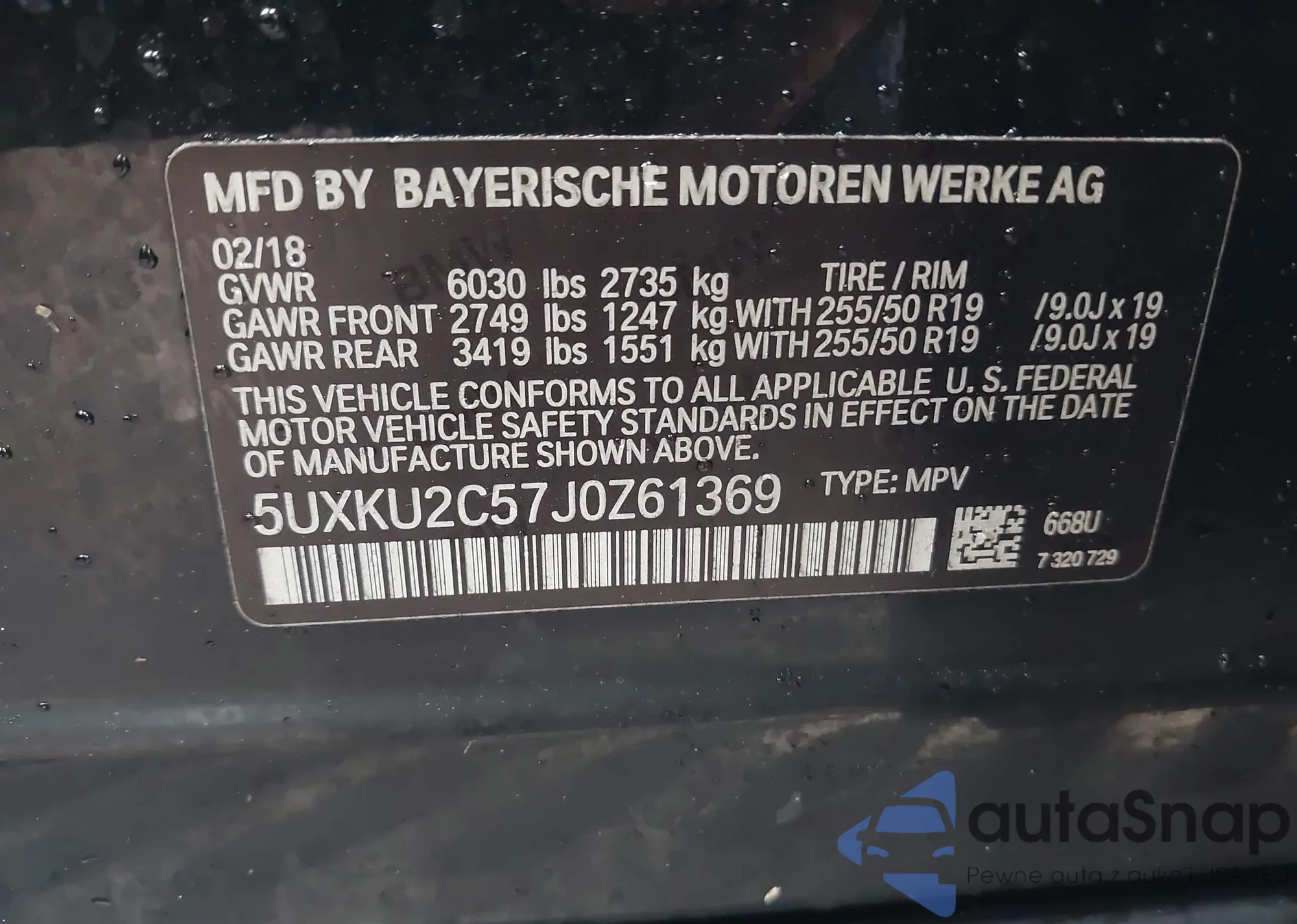 • VIN 5UXKU2C57J0Z61369