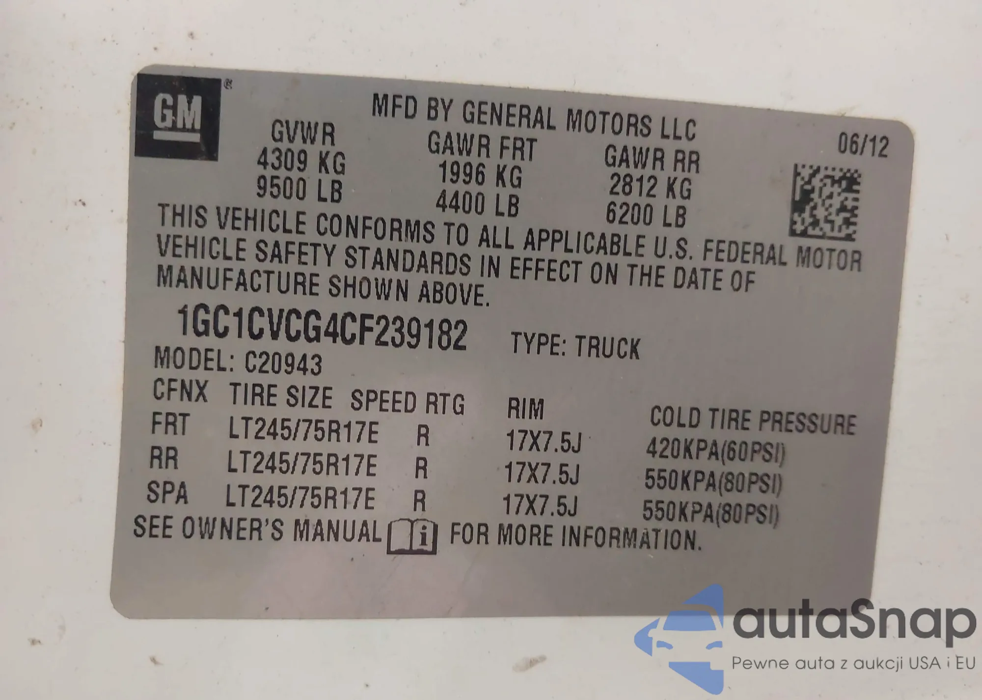 LOT: 42763588 VIN: 1GCHK29D27E120474