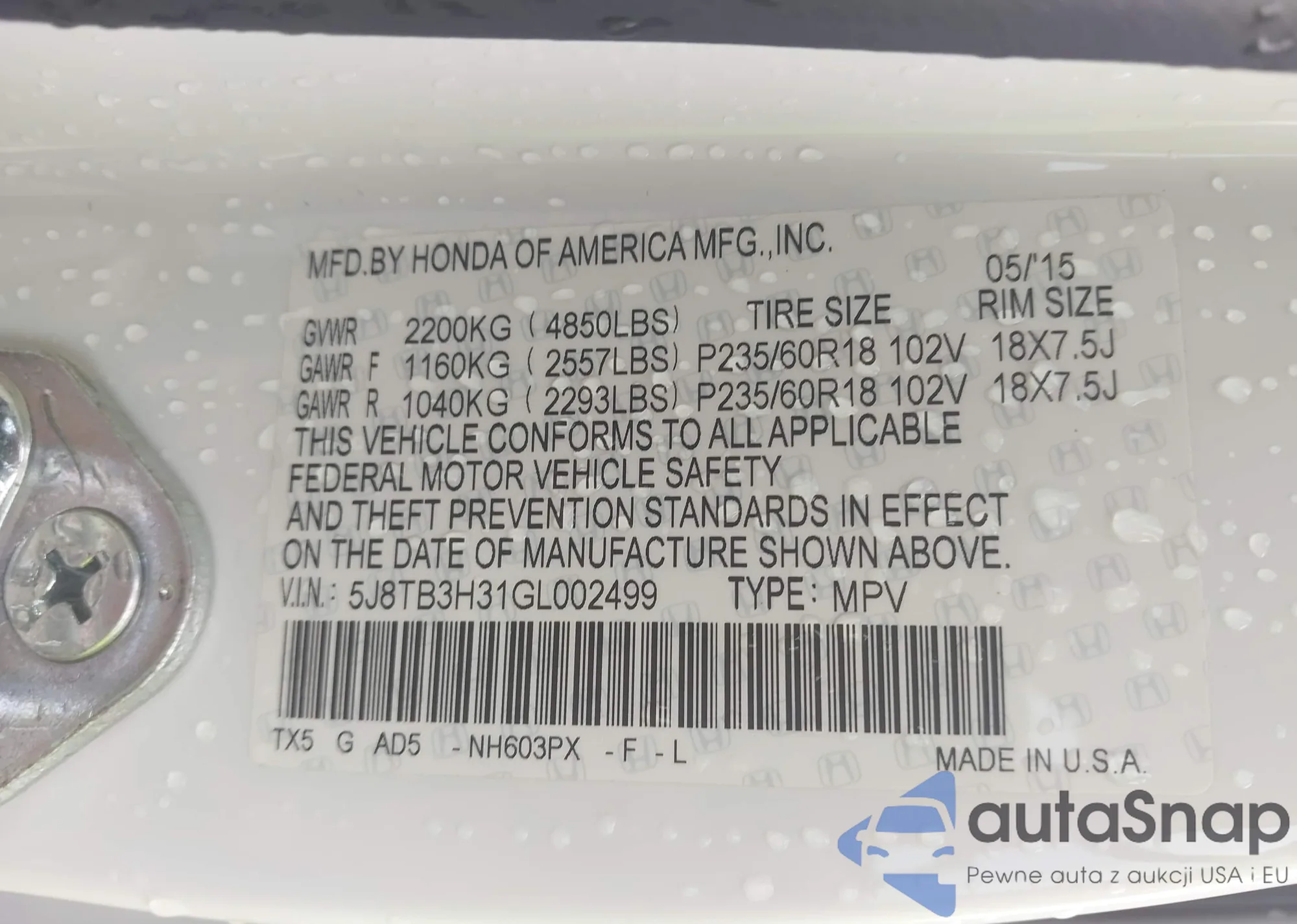 • VIN 5J8TB3H31GL002499