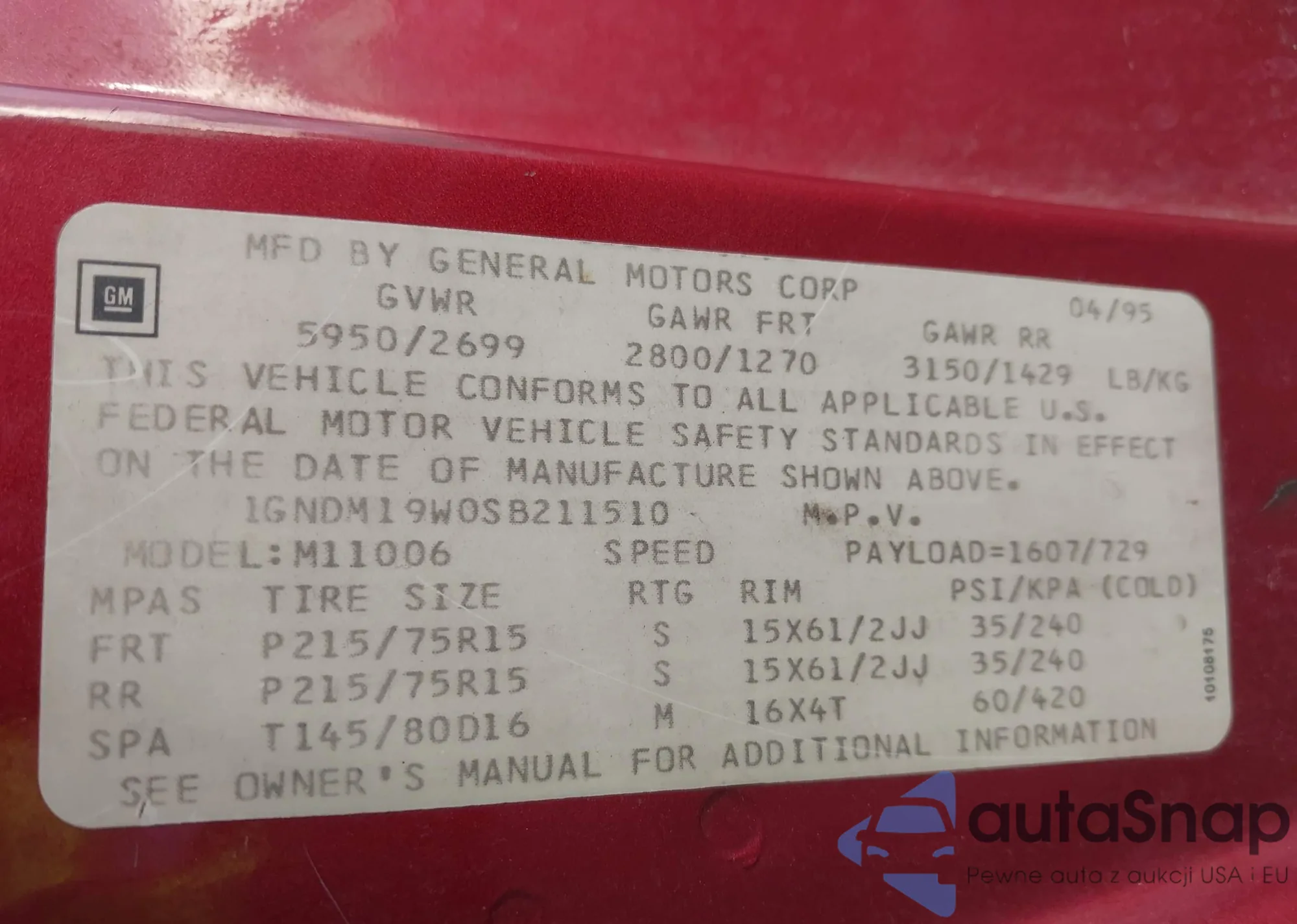 • VIN 3G1BE6SM6KS552331