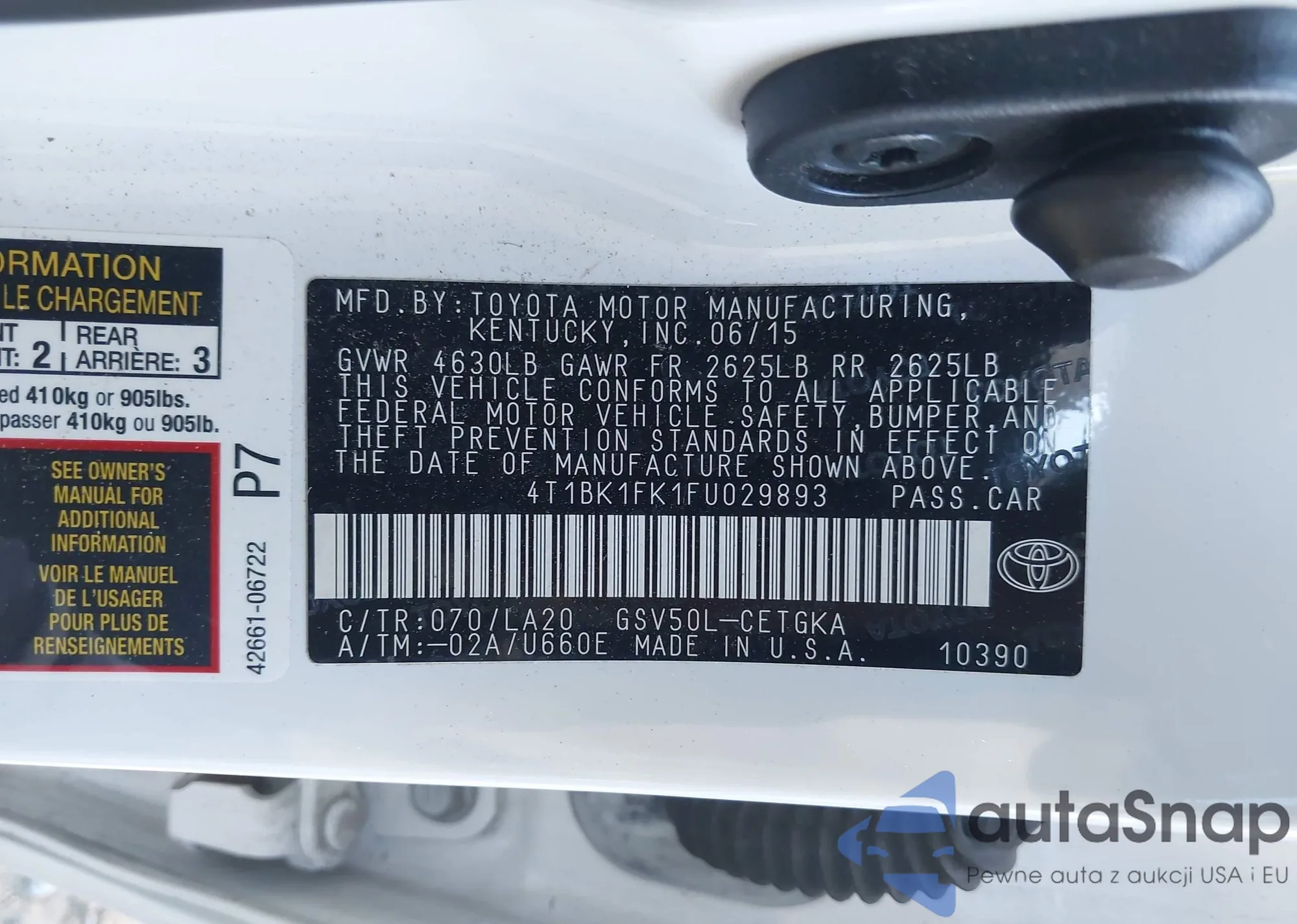 LOT: 43626834 VIN: 4T1BK1FK1FU029893
