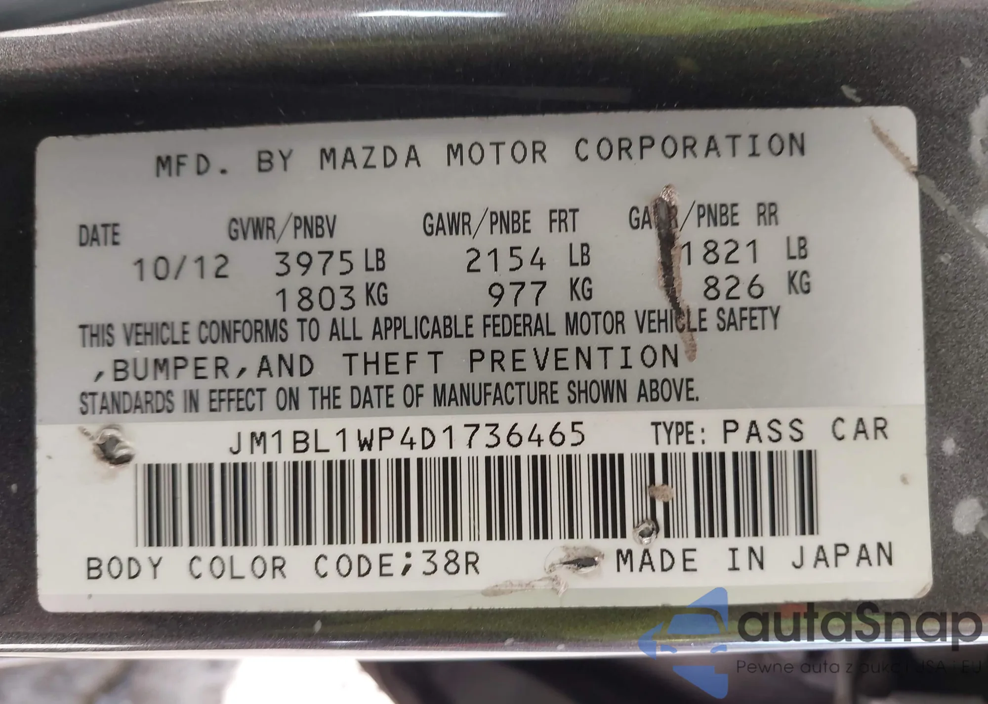 LOT: 43654836 VIN: JM1BL1WP4D1736465