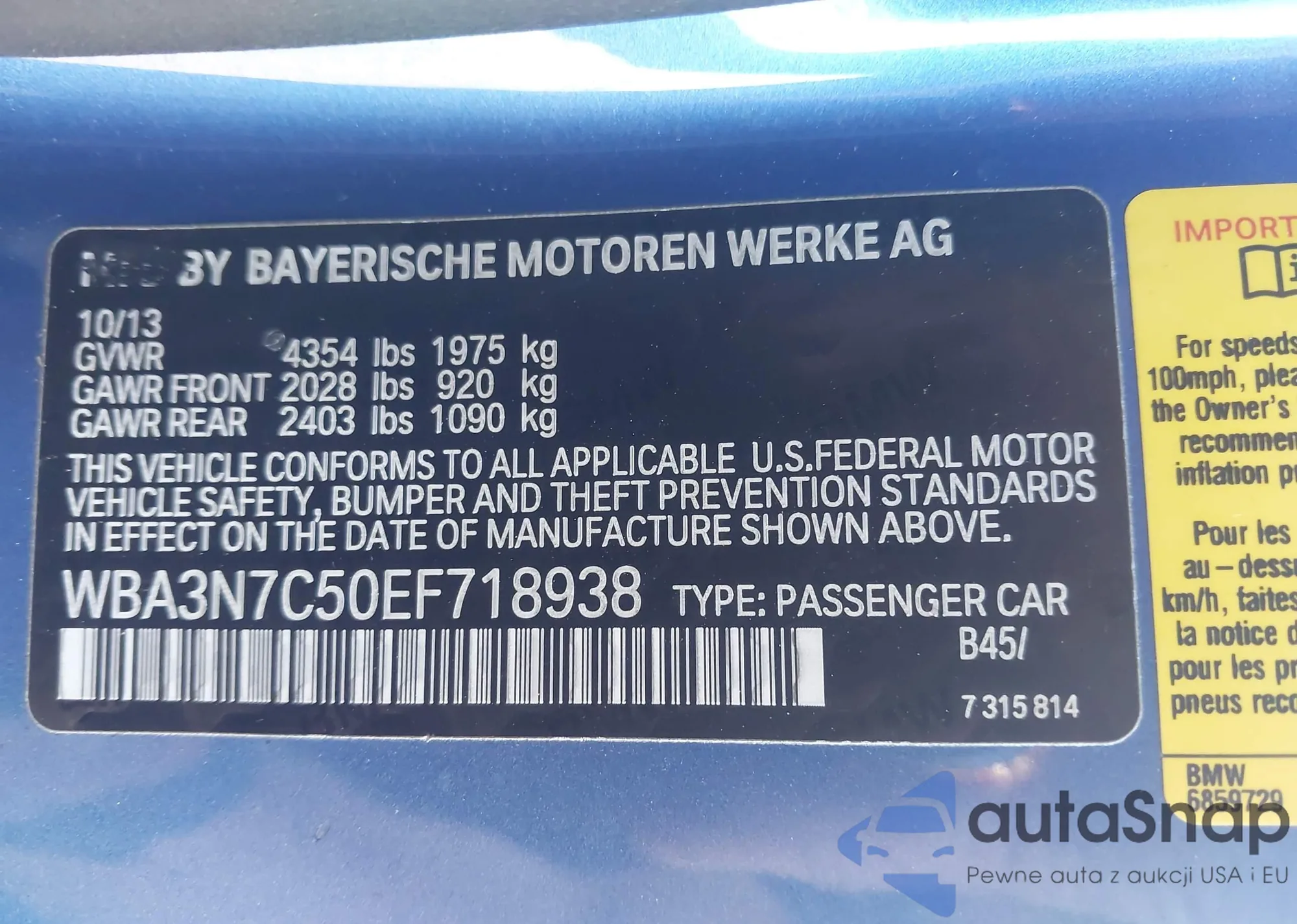 • VIN WBA3N7C50EF718938