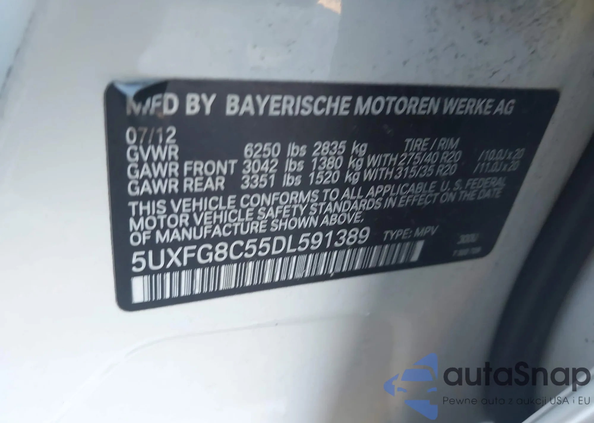 • VIN 5UXFG8C55DL591389