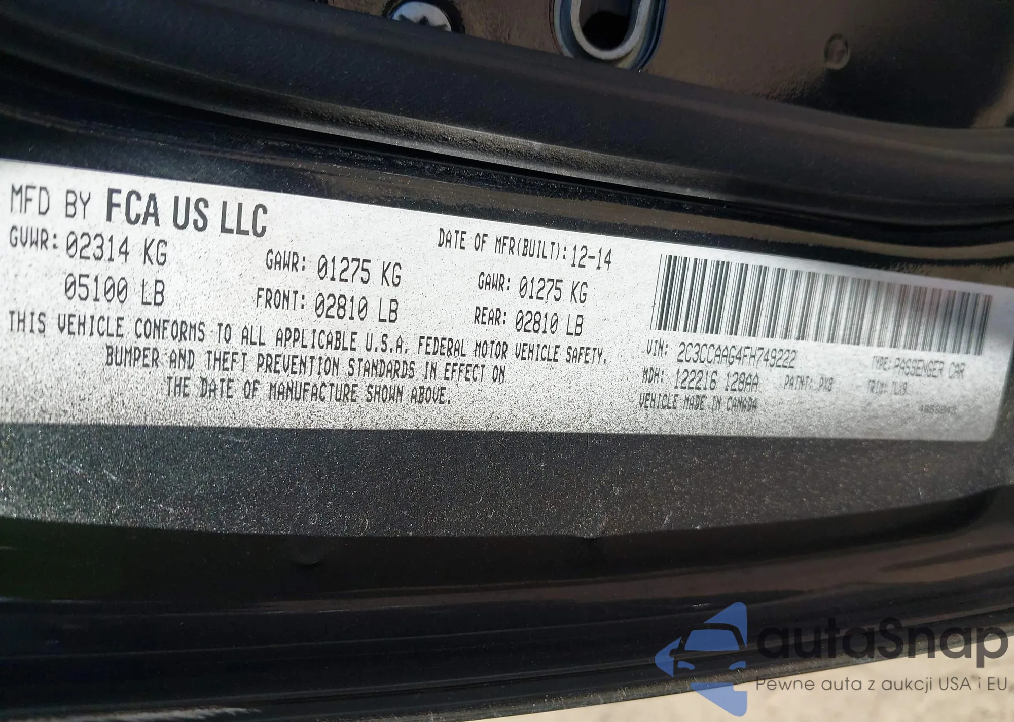• VIN 2C3CCAAG4FH749222