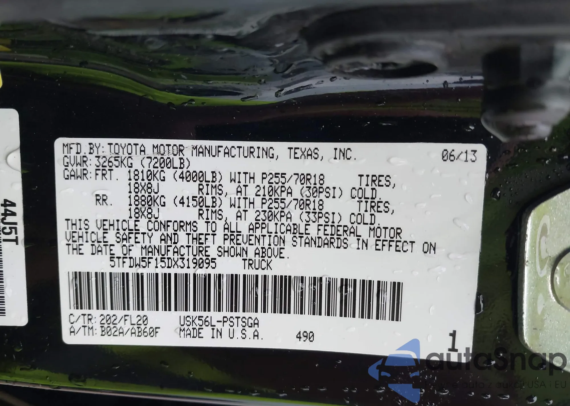 • VIN 5TFDW5F15DX319095