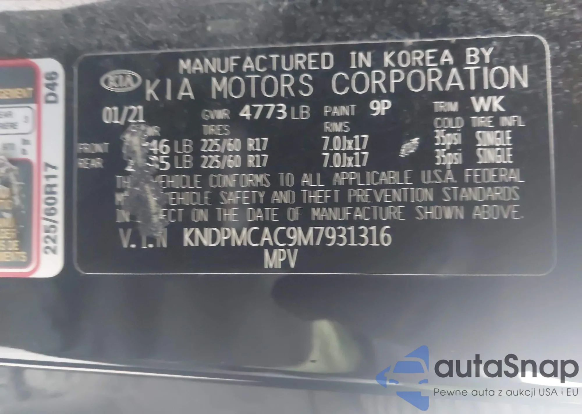 • VIN KNDPMCAC9M7931316