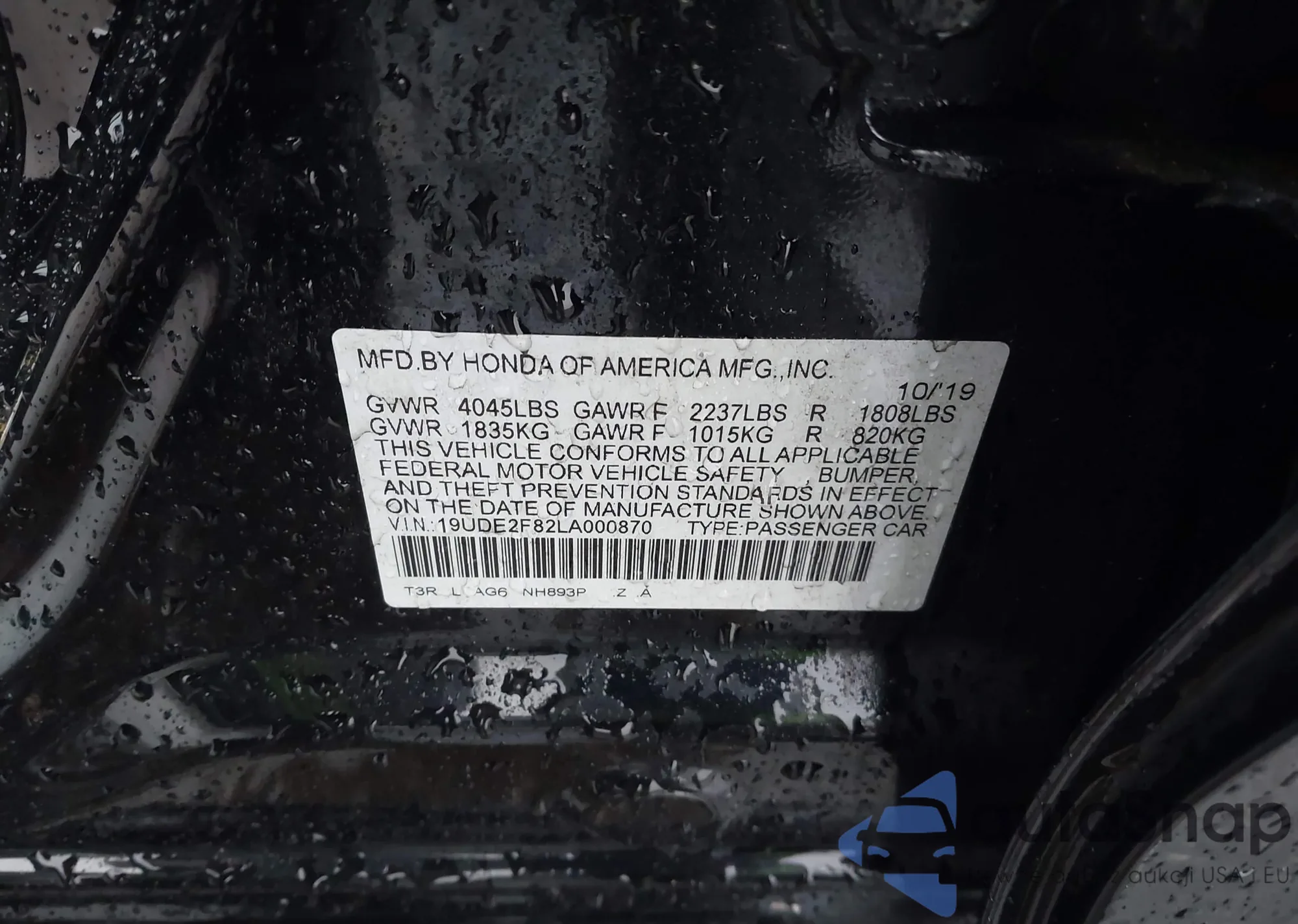 LOT: 43828232 VIN: 1HGCY1F22SA055164