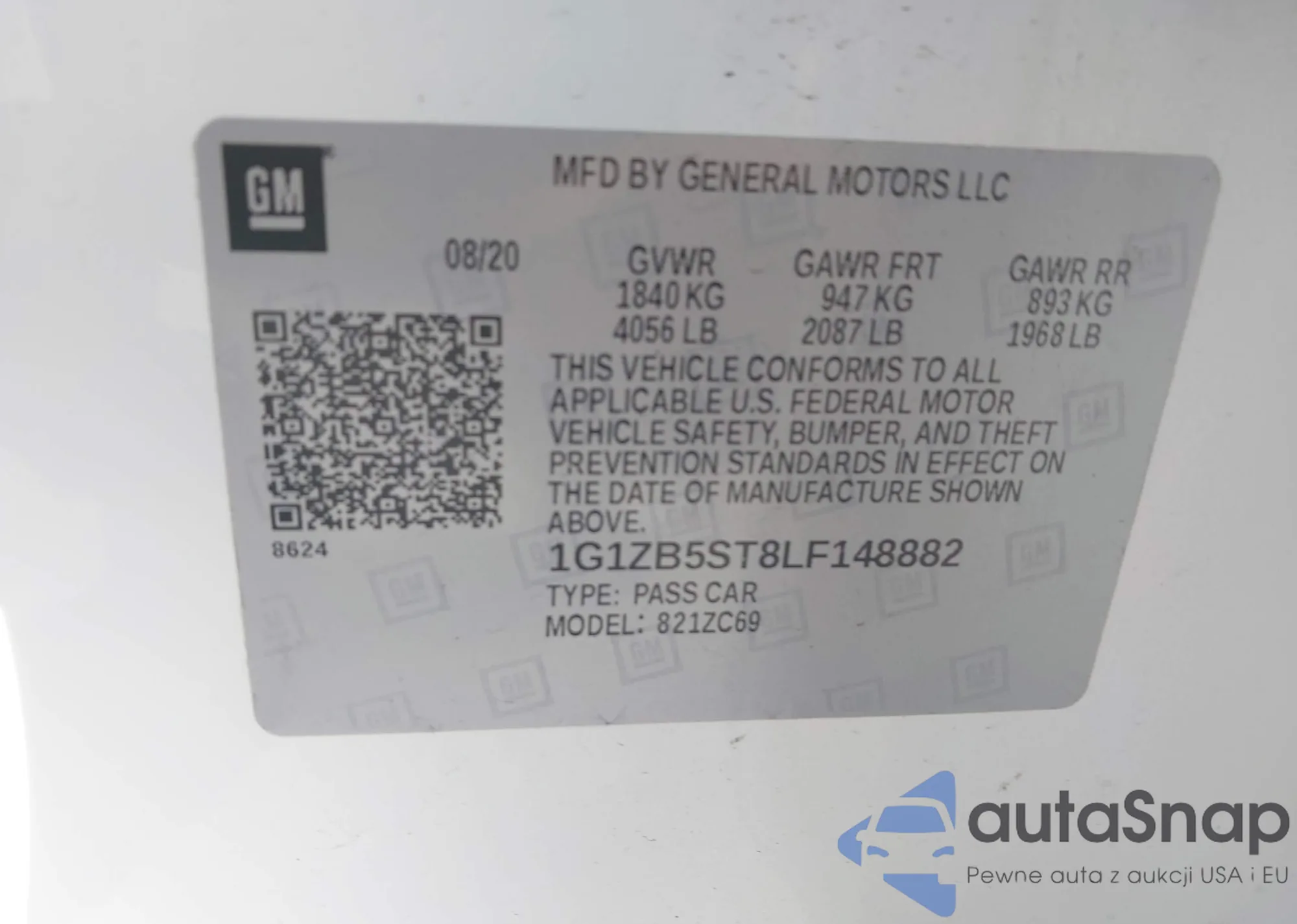 • VIN 1G1ZB5ST8LF148882