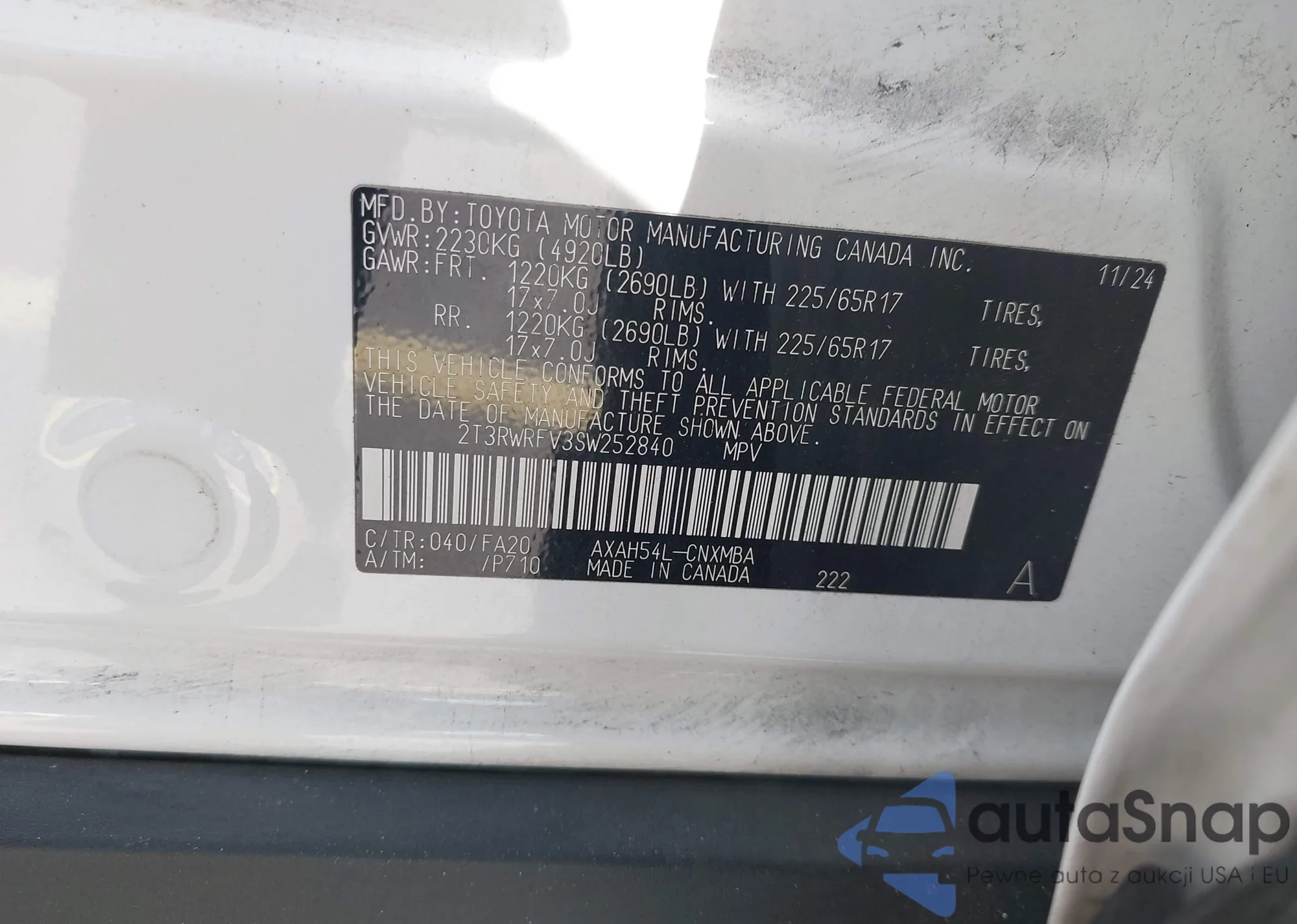 LOT: 43549057 VIN: 2T3RWRFV3SW252840