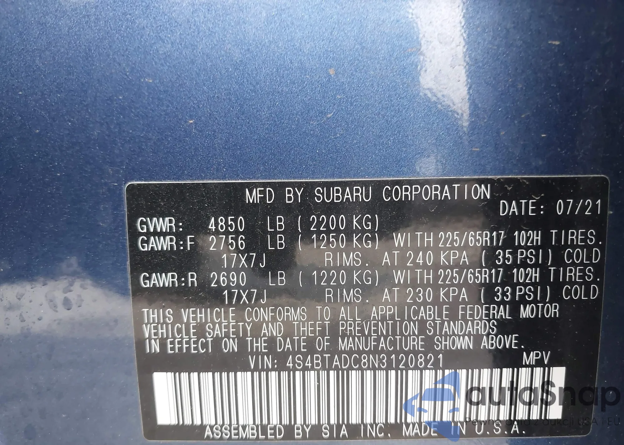 • VIN 4S4BTADC8N3120821