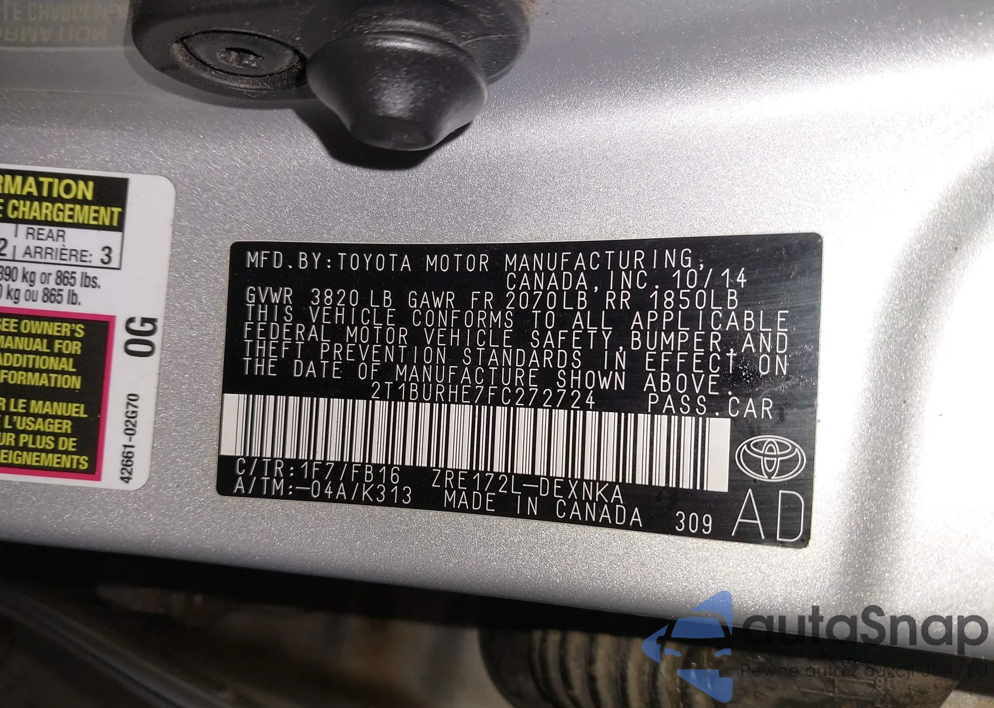 • VIN 2T1BURHE7FC272724
